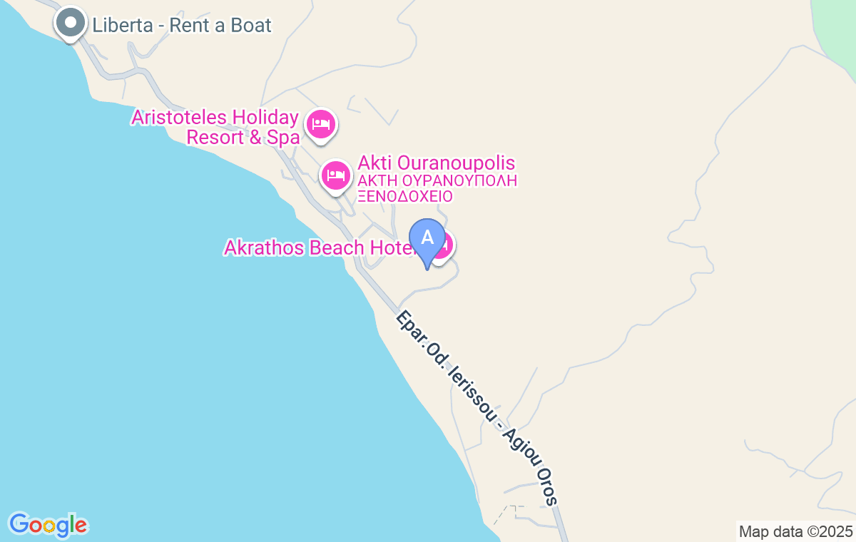 In this particular setting in Ouranoupolis, Akrathos Beach Hotel stands between the island of Ammouliani and Mount Athos and is mirrored into the water of the most famous region’s beach. Surrounded by the silver and green of the olive trees, the blue colours of the landscape, the Mount Athos architecture shares the rooms in various types for the best possible hospitality. The resort is located at the Mount Athos area, only 1,8km away from Ouranoupoli, built according to the monastic architecture. Surrounded by silvery olive trees, wrapped in the aura of blue and sea. The magnificent views to the isles, to Ammouliani and mount Athos colours the accommodation of its visitors, when the facilities combine colour, flavour and aromas, fulfilling all desires.