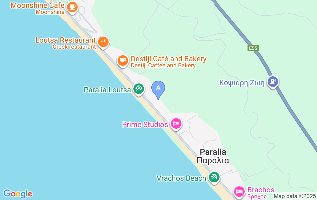 Sunrise Rooms is located in Vrachos at only 50m from the beach. Private parking in the shade ot the olive trees is provided for all guests and balconies have amazing sea view.