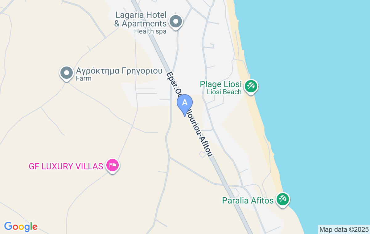 The nearest market and bakery are at 500m and the beach is about 800m away, or about 15 minutes walk. More about beaches in Afytos read here.