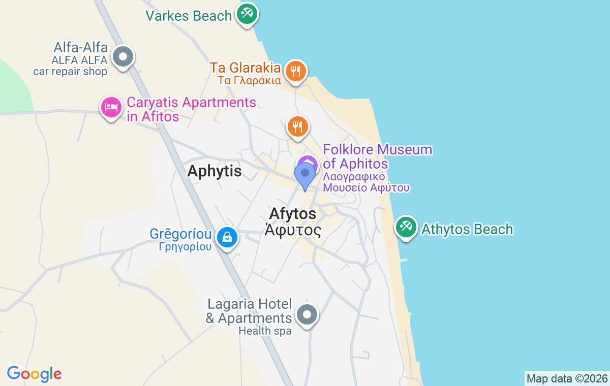 Mageiras Boutique Hotel is located in the picturesque seaside village of Afitos, on the Kassandra peninsula, known for its authentic Mediterranean atmosphere and stunning viewpoints. This modernly designed accommodation offers a pleasant and functional space, ideal for a relaxing seaside holiday. It is approximately 550 meters from the beach in Afitos, allowing guests to enjoy the clear, turquoise sea. The beach is well organized and suitable both for peaceful relaxation and for spending the entire day in the sun. Afitos is known for its authentic architecture, stone-paved streets, and rich selection of restaurants and cafés. Thanks to its excellent location, the property is an ideal base for exploring the entire Kassandra peninsula and its popular resorts. The proximity of all important amenities further contributes to a comfortable and enjoyable stay.