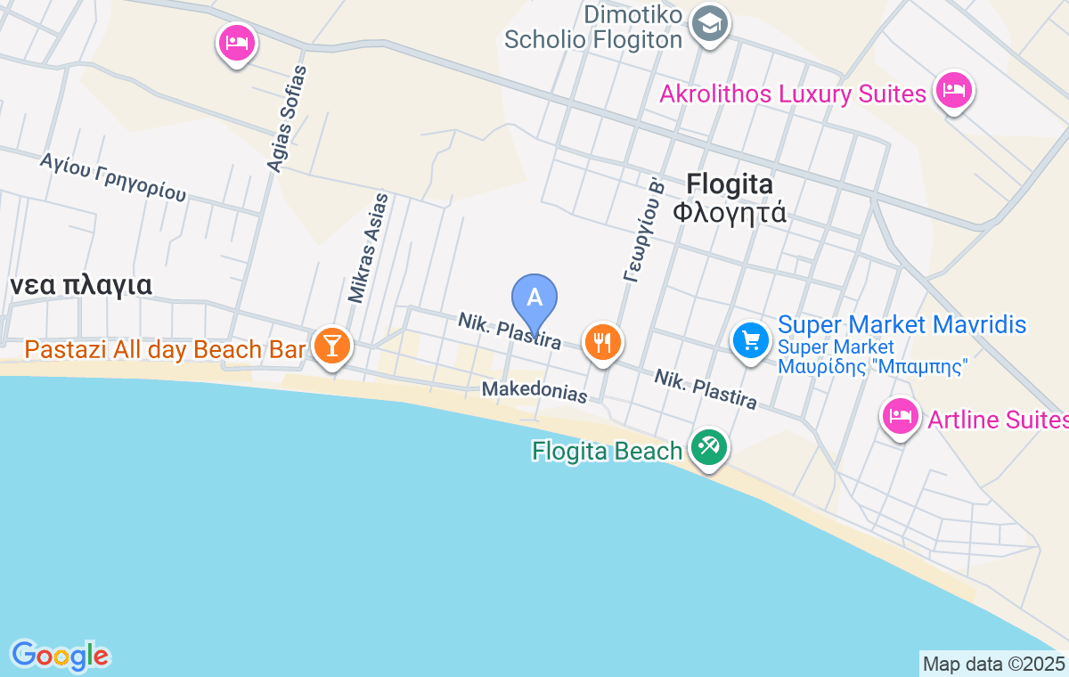 Argiro Apartments is the accommodation at 200m from the beach and 100m from the center of Nea Flogita. It offers nine clean and well-maintained quadruple apartments on the ground floor (one step below ground level) and on two floors, and apart from its good location, one of its main advantages is private parking.
