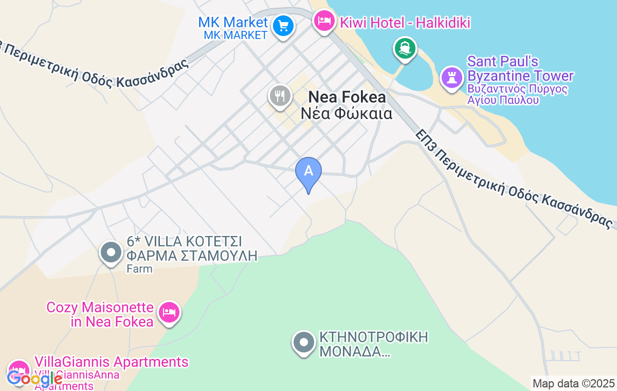 Thanks to its excellent location at the beginning of the Kassandra peninsula, Ioannis Villa is a perfect starting point for exploring the many attractions of Halkidiki. Nea Fokea is a quiet and authentic fishing village, just 17 kilometers from Nea Potidea. It is known for several excellent seafood tavernas, a small sandy beach, and historical landmarks that give the village its distinctive charm. On a hill above the village stands a 15th-century Byzantine tower, a symbol of Nea Fokea, along with a chapel easily reached by a short walk. Nearby is a catacomb with a holy spring dedicated to Apostle Paul, the patron saint of the village, where it is believed he once hid from persecution. Nea Fokea is close to popular resorts such as Afitos, Kalithea, and Sani, all easily accessible and offering a variety of attractions. Meanwhile, Nea Fokea remains a peaceful retreat for those seeking an authentic Halkidiki experience, combining tradition, history, and natural beauty. The nearest airport is Thessaloniki International Airport Makedonia, located approximately 69 kilometers away, or about a fifty-minute drive by car depending on traffic conditions.