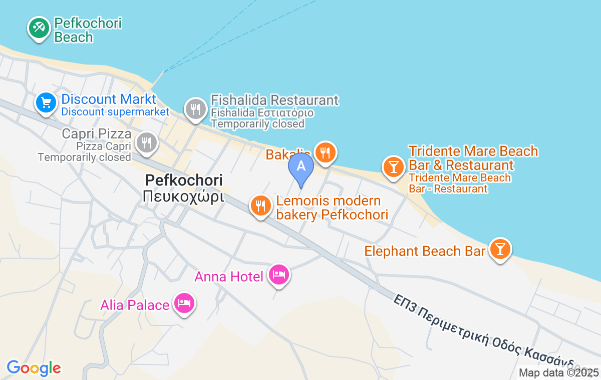 Emerald Seaside Apartment is located in the heart of Pefkochori, in a modern complex situated just a short distance from the beach. This spacious and comfortable apartment offers contemporary accommodation, ideal for a summer holiday. Pefkochori is one of the most popular resorts in Halkidiki, and during peak season, the town beach and promenade are very lively, full of tourists, restaurants, tavernas, bars, and shops. The beach in Pefkochori is long and mostly narrow, except at the ends where it widens slightly. It is covered with fine pebbles, the sea is clear and clean, and the gradual entry into the water makes it suitable for families with children.