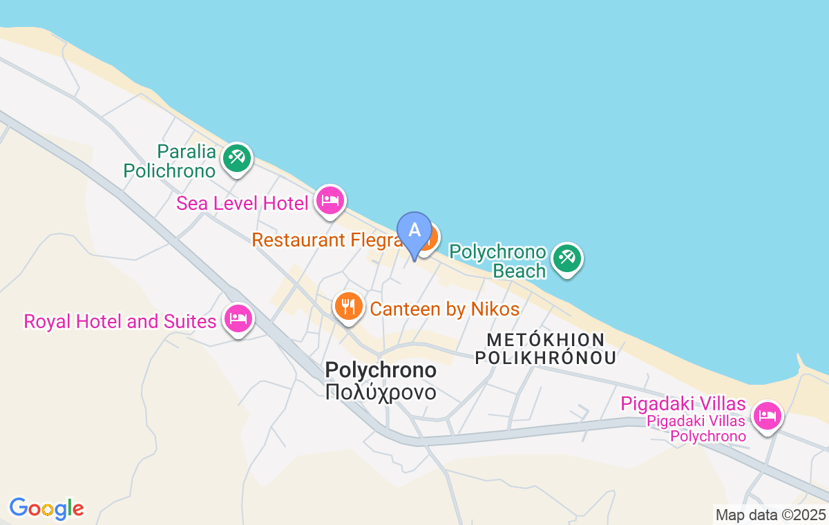 Polihrono is one of the most renowned resorts on the eastern coast of Kassandra, the first peninsula of Halkidiki, attracting many visitors with its peaceful vibe and family-friendly character. The spacious sandy beach with shallow, crystal-clear waters is ideal for carefree swimming, especially for children, while its Blue Flag award highlights its high level of quality and organization. Surrounded by pine forests and olive groves, Polihrono also offers access to natural beauty, such as Lake Mavrobara—a small natural oasis that makes for an appealing excursion. Along the coast, a promenade is lined with traditional taverns, cozy cafés, bars, and shops, while daily necessities such as supermarkets and pharmacies are all within easy reach. Thanks to its favorable location, Polihrono serves as an excellent base for exploring Kassandra—it’s only 5 km from Hanioti and about 9 km from Pefkochori, while the international airport is approximately 88 km away. Whether traveling as a family or a couple, this resort has everything needed for a relaxing and fulfilling stay.