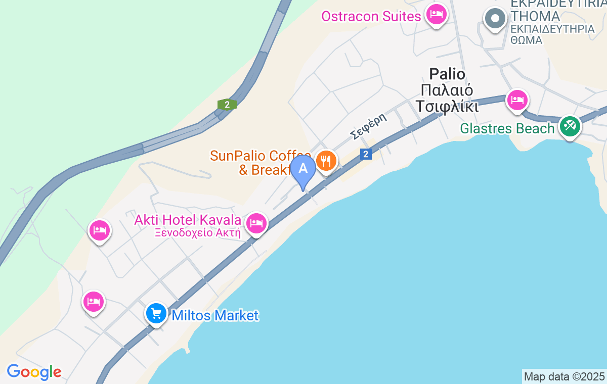 Fotini’s Studio is located 10 km from Kavala, 6 km from Nea Iraklitsa, and 5 km from the Batis complex. The nearest airport, Kavala’s “Alexander the Great” Airport, is 45 km away.