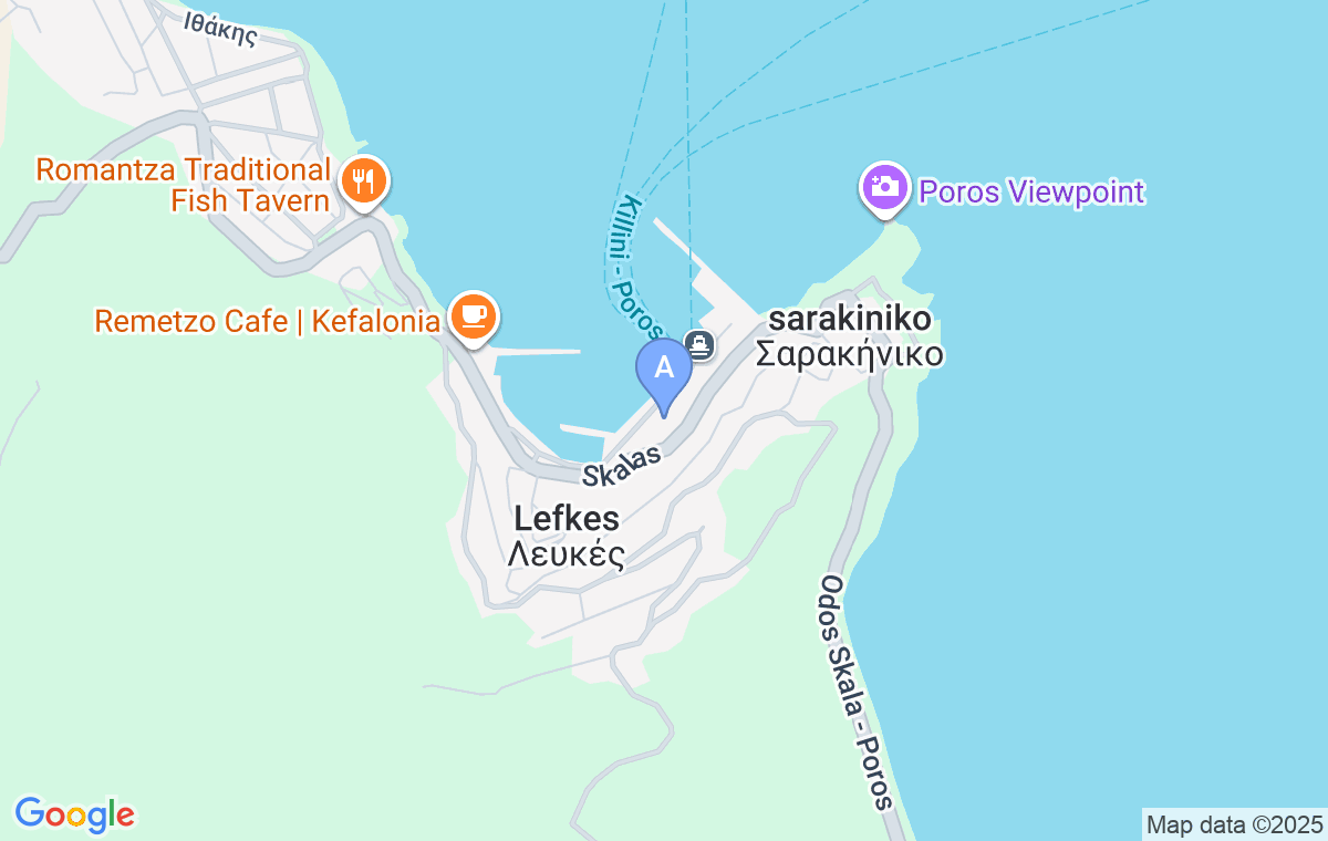 In the east side of the island, at about 12km from Skala to the north, driving on the road that stretches along the shore, the port of Poros is located, from which the ferries of Levante Ferries take off to the place called Kilini on the Peloponnese.