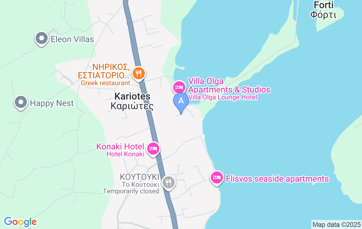 Faros Studios is situated in the tranquil settlement of Kariotes, approximately 30m from the sea and the beach, 150m from the center, and about 600m from Ligia. Guests have at their disposal private parking, a communal barbecue area with seating and dining space, and a snack bar.