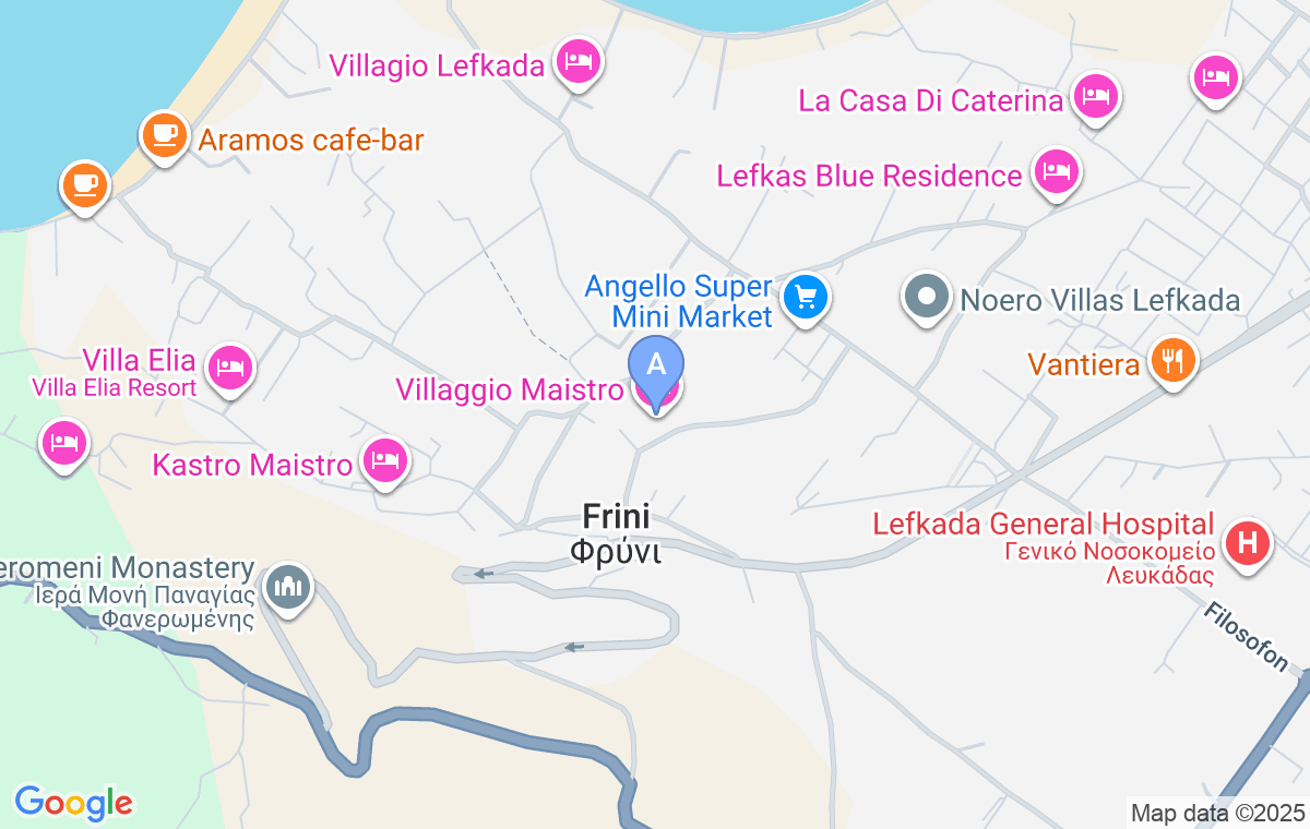 The nearest grocery store and bakery are at about 500m in Frini settlement, and Lefkas is about 2km away.
