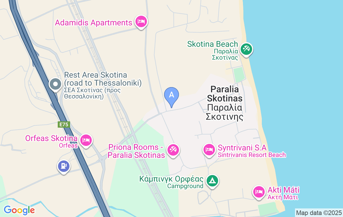 In the immediate vicinity of Sun Studios there are many attractions. The closest is Skotina Beach, while Leptokarya Beach is about 5 km away and the popular Nei Pori Beach about 11 km away. Litochoro, known as the starting point for mountaineers climbing Olympus, is about 15 km away. Paralia, one of the most visited resorts in Pieria, is about 36 km away, while the famous Olympic Beach is located 35 km from the property. The city of Katerini, the administrative center of the region, is about 32 km away. The enchanting Olympus National Park, also about 32 km away, is ideal for guests who want to spend part of their holiday surrounded by the most beautiful nature. Thessaloniki is located 100 km from the property and is an excellent choice for a day trip. The nearest airport is Thessaloniki International Airport “Makedonia,” approximately 124 km away. This location allows guests to combine beach holidays with visits to natural and cultural landmarks such as the archaeological site of Dion, the Enipeas waterfalls, and traditional villages at the foot of Olympus, making Sun Studios the perfect choice for those seeking a diverse and fulfilling holiday.