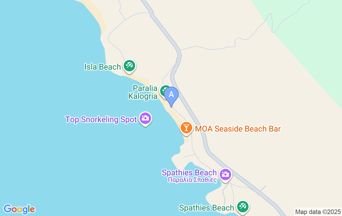 Kalogria beach is located in the west part of the peninsula, about 5 km south of Nikiti and about 1 km after Agios Ioannis beach.
