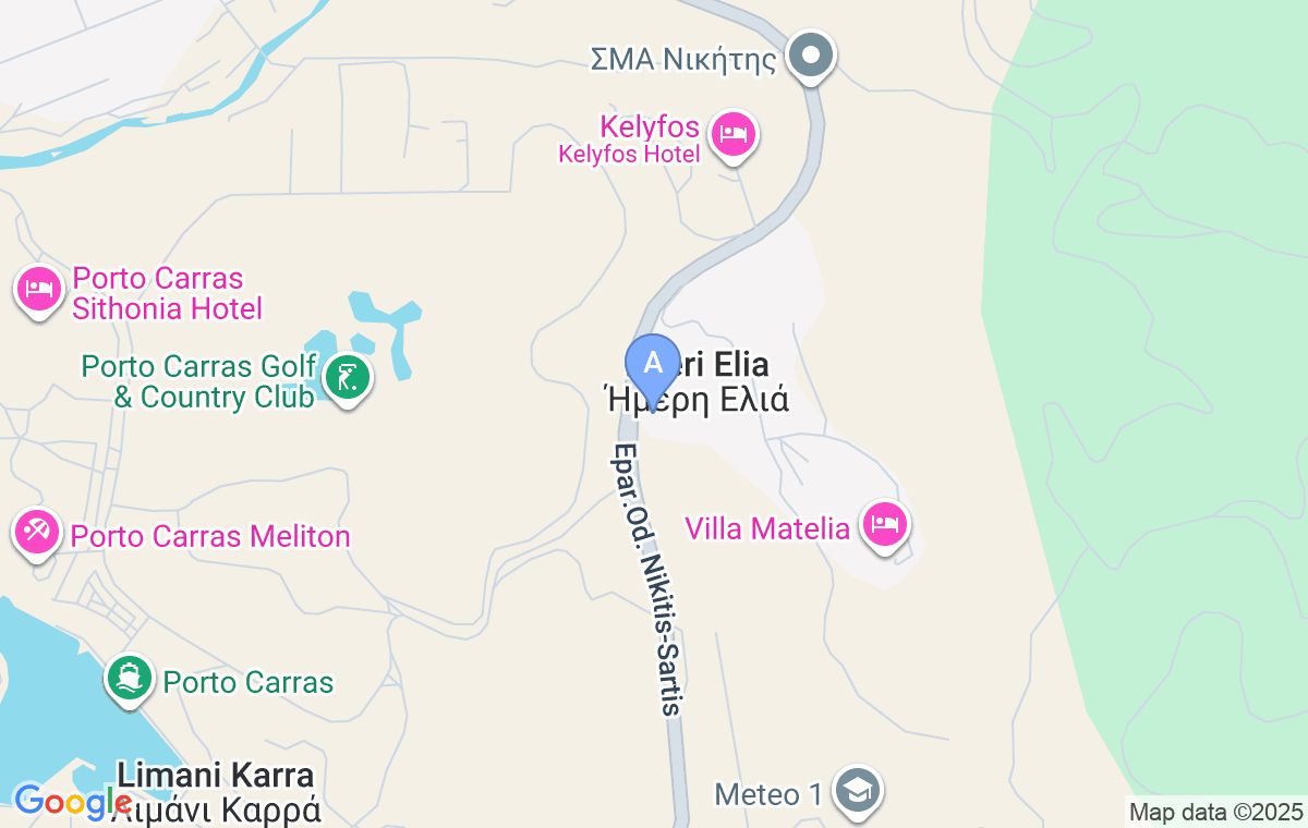 You will find this accommodation on the left side on the Nikiti-Sarti main road, at about 940m after you pass the supermarket Masoutis. In the same yard there is also Christos House accommodation.