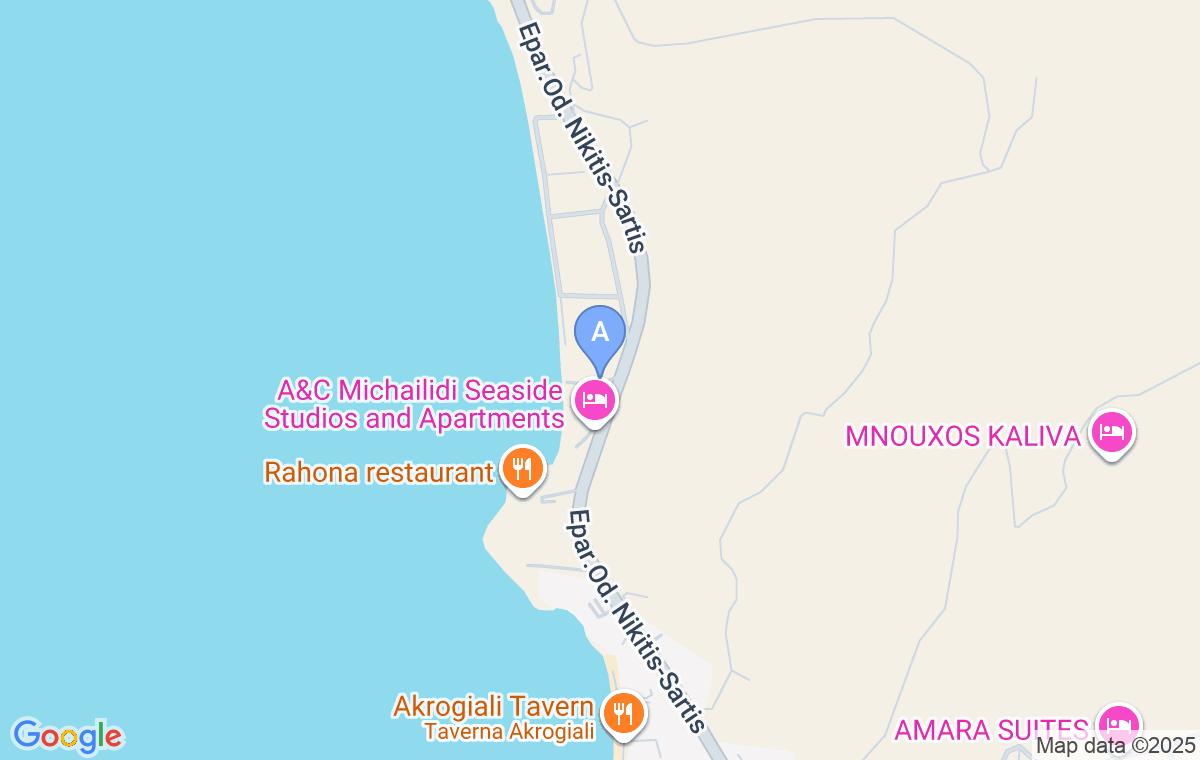 From the restaurant Rahona accommodation is around 250m away, 1,5km away from Neos Marmaras, 500m away from the bakery, 800m away from the closest market. Entrance to the sea is pebbly, but after 1m is tiny sand.