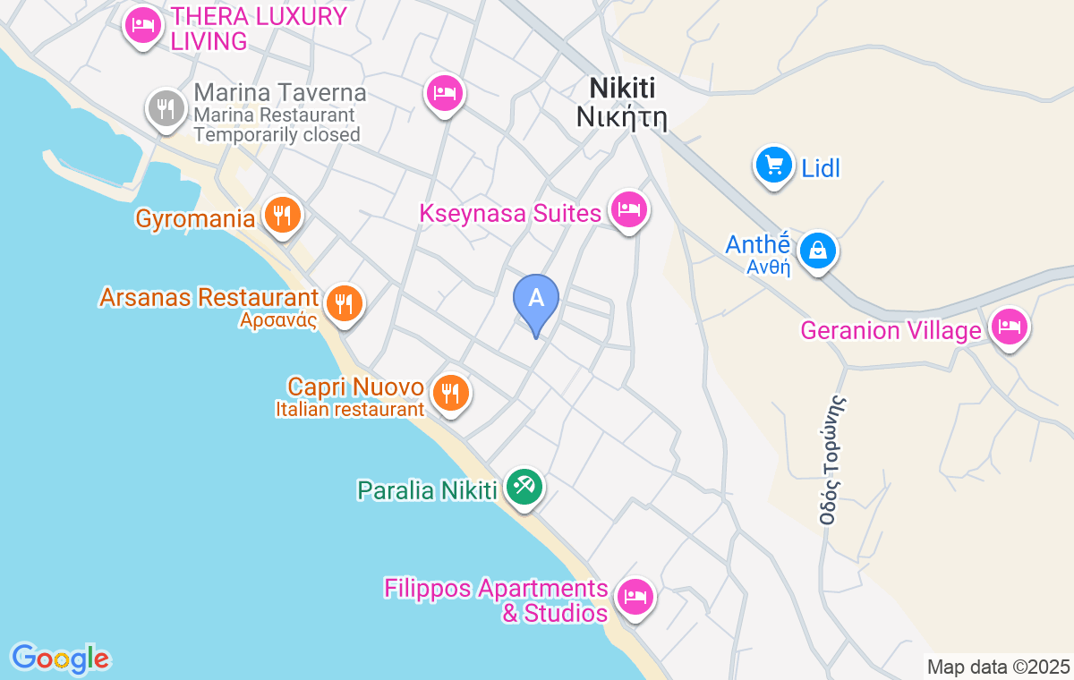 The easiest way to get to the accommodation is if you turn off the main road to Nikiti after the supermarket Masoutis.