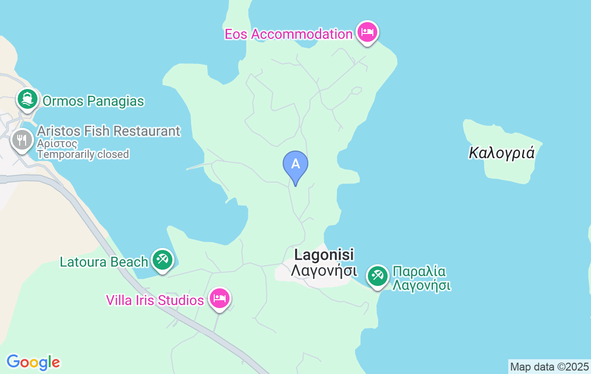 Lagonisi Beach is at about 650m, while another smaller cove is 300m away. We would like to mention that this cove has stones at the entrance to the water and not the best access, but the colour of the sea and the privacy on it are worth going. It’s best to ask the owner how to get there by shortcut. The closest place is Ormos Panagias (about 2km), with taverns and supermarkets.