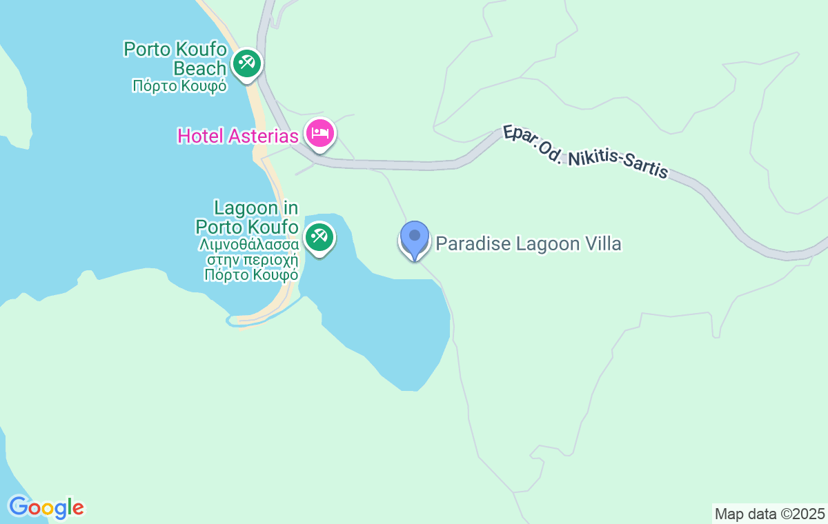 Paradise Lagoon Villa is located 6 km from Toroni and 20 km from Sykia. Some of the most beautiful beaches in this part of Sithonia are nearby: Destenika Beach (9 km) and Tristinika Beach (10 km). The nearest airport, Thessaloniki International Airport “Macedonia,” is 134 km away.