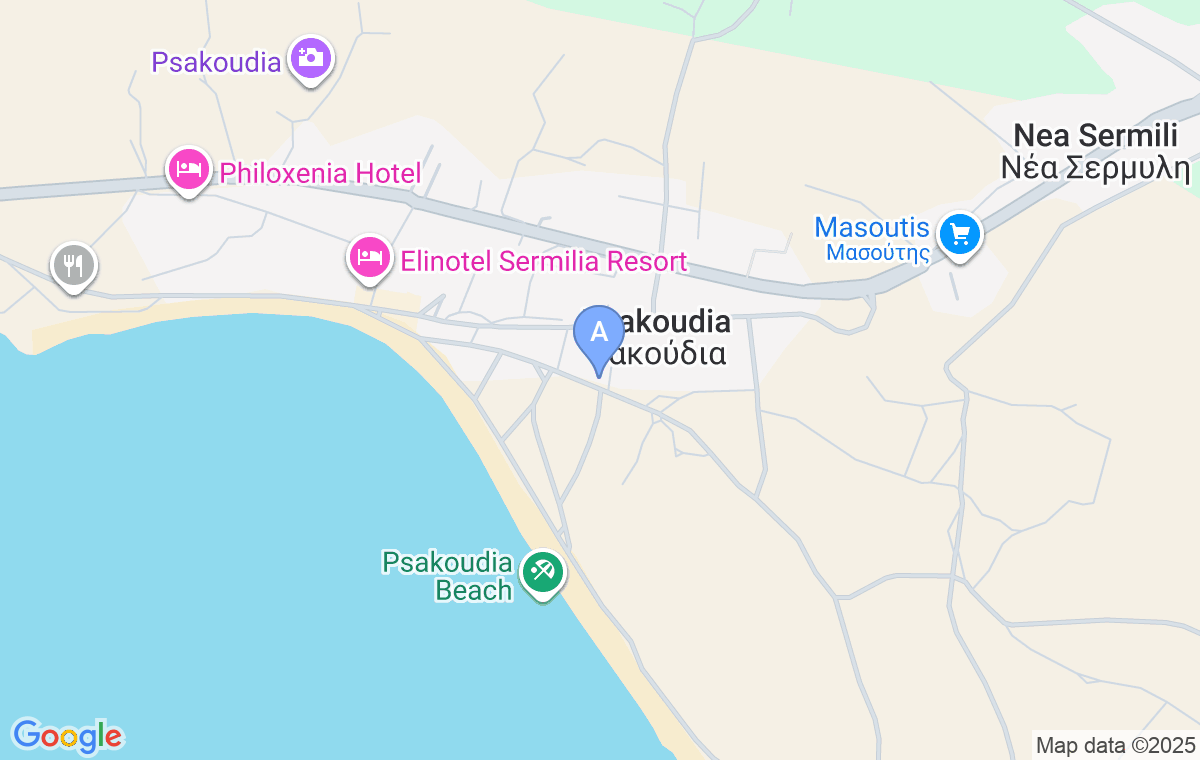 Coming from the direction of Gerakini, at the first turn enter Psakoudia and go straight all the way to the Cronwell Resort and then turn right, then continue straight for some 450m and you will see the accommodation on your left.
