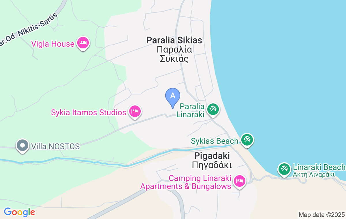 Costa Del Sol Apartment is located in a peaceful setting, outside the inhabited area, about 250 meters from the long sandy Sykia Beach and approximately 5 kilometers from the village of Sykia. Thanks to its location, the accommodation offers peace and privacy, while still providing quick and easy access to the beach and nearby amenities. Sykia Beach is about 1.5 kilometers long, wide, and covered with fine sand both on the shore and in the water. It has been awarded the Blue Flag, featuring shallow areas ideal for families with children, as well as sections with a gradual depth and no long shallow zone. The accommodation is nicely arranged and includes a courtyard suitable for rest and relaxation. It serves as an excellent starting point for exploring the entire peninsula, especially the many beautiful beaches in the southern part of Sithonia.