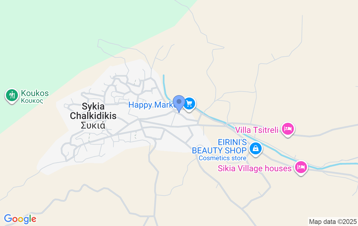Sykia, one of the largest and oldest villages in Sithonia, is located on the southeastern coast of the peninsula, among gentle hills that slope down to the sea. Its past is deeply rooted in tradition and is still reflected in stone houses, small churches, and architecture that preserves the spirit of old times. The village maintains a peaceful traditional character: narrow streets wind between white houses with wooden balconies, while bell towers mark the rhythm of the day, and everyday life flows slowly and unobtrusively in an atmosphere reminiscent of old Greece. Bakeries spreading the scent of fresh bread, small shops, and taverns with homemade dishes create a sense of warmth and hospitality, while on the coast, just a few minutes’ drive from the village, stretches the spacious Sykia Beach—a long and wide strip of golden sand washed by crystal-clear water, considered one of the most beautiful in Sithonia. Nearby are also numerous picturesque coves, such as Klimataria, Turkolimnionas, Linaraki, Pigadakia, and Valti, each with its own unique atmosphere, ideal for swimming, resting, and peace away from crowds. The summer ambiance is complemented by seasonal bars and restaurants along the shore, but without the bustle of larger tourist centers, so this balance between tradition and modern amenities makes Sykia a special place—a haven for families and all who wish to escape everyday rush while enjoying nature and an authentic Greek experience. The accommodation is about 140 kilometers from Thessaloniki International Airport.