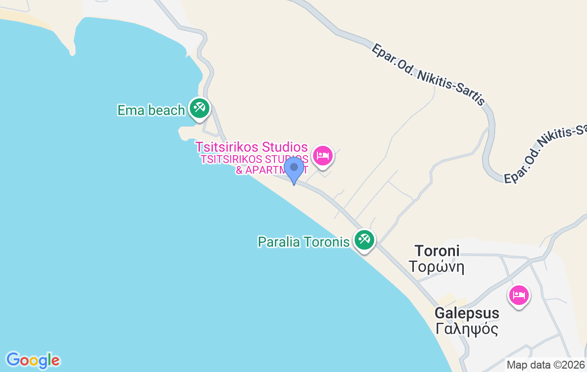 Toroni is a peaceful village located in the southwestern part of Sithonia, known for its beautiful beaches and relaxed Mediterranean atmosphere. Its taverns and cafés offer authentic local specialties, while the surrounding area provides many opportunities to enjoy the sun and the sea. Guests can explore hidden spots and the natural greenery surrounding this holiday resort. Nearby beaches include Destenika Beach 1 km and Porto Koufo 5 km, while the popular resort of Sarti is 31 km away and Thessaloniki Airport is 129 km from the property.
