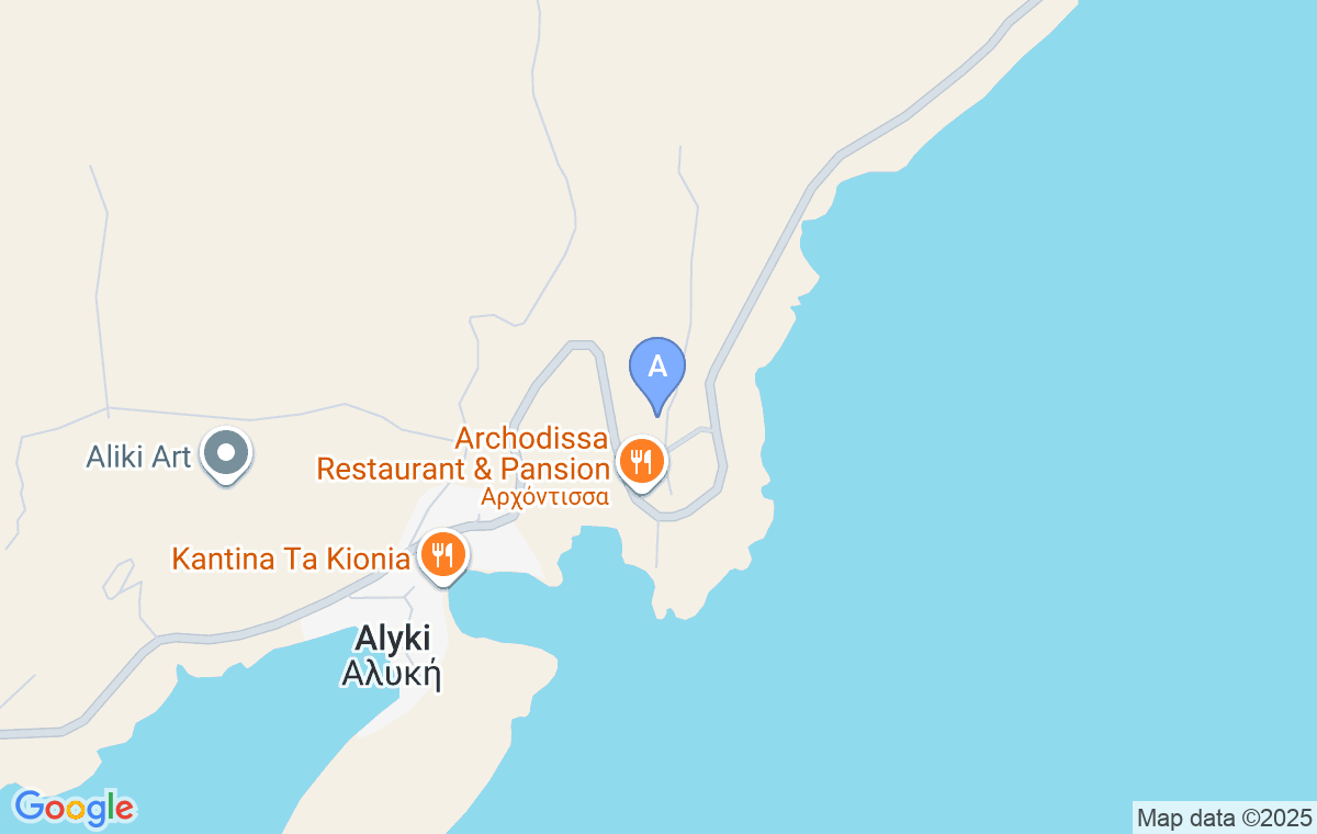 Arriving to Alyki from Potos, pass by the restaurant Archodissa and take a left uphill. 300m you will reach this villa.