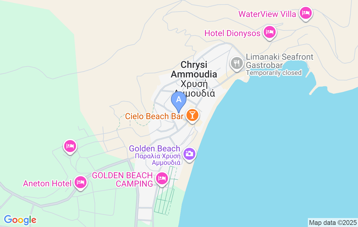 It is located in Skala Panagia (Golden Beach), 120m away from the sandy beach with a gradual depth. There are 4 maisonettes (two-level studios, 50m2), 3 apartments (35m2), and 1 studio (35m2) for rent.