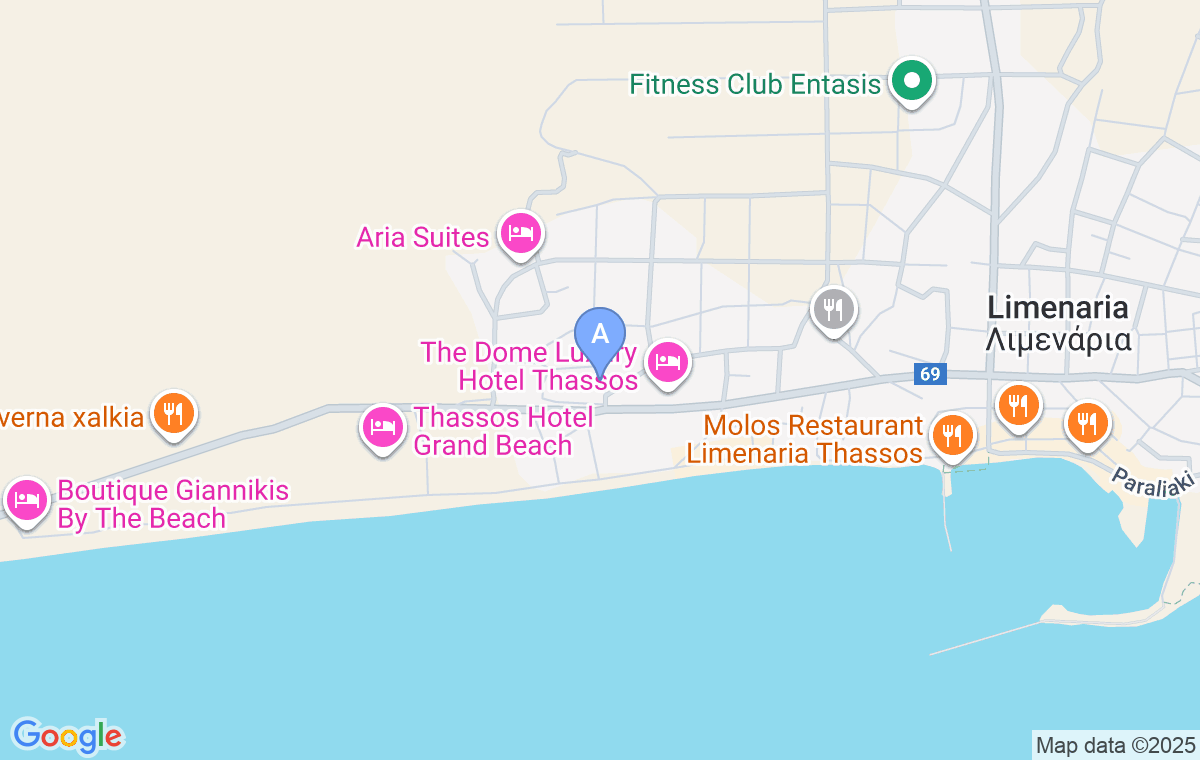 Coming from the direction of Prinos, turn left at the intersection where you see a sign for the Discovery accommodation. Continue straight and you will come across this property with a yellow façade immediately after the El Mare Luxurius and Golden Nest villas.