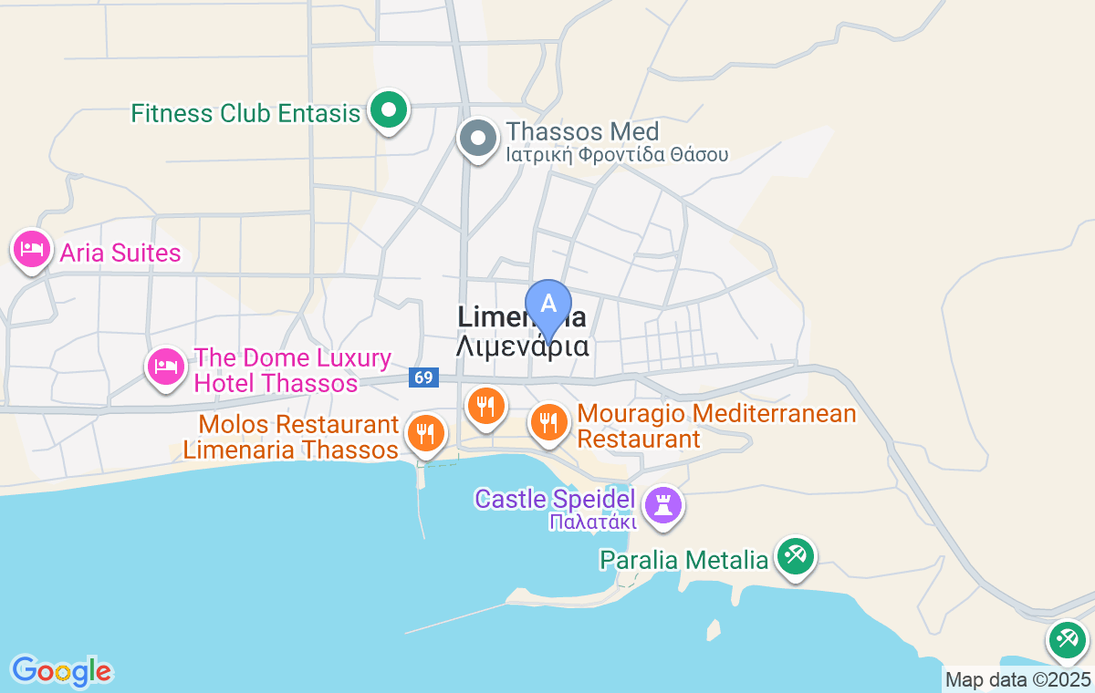 Coming from Prinos, turn left 130m after passing the main crossroad in Limenaria. Drive towards the tavern Koukoutsi and when you pass it take the first street on the right. You will see Villa Casa Ideale on the right side of the road.