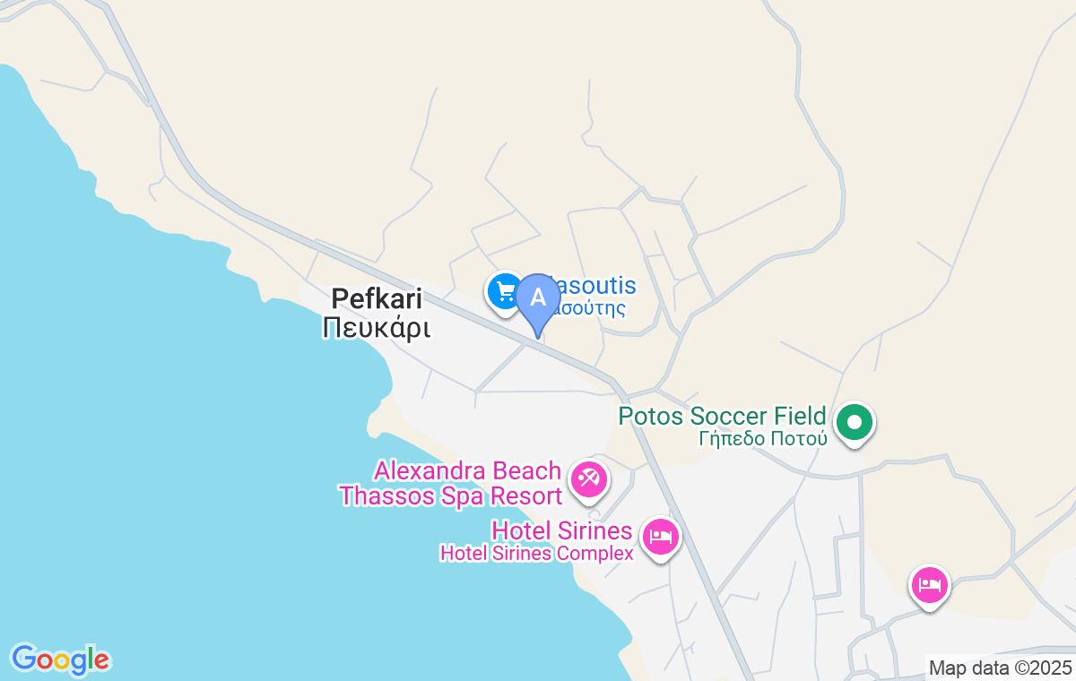 Eleni Vila has great location becauce Pefkari beach is at a 5-minute walking distance from the house via shortcut, while Potos is at 7-8 minutes on foot from the villa. Big supermarket Masoutis is just next to the villa.