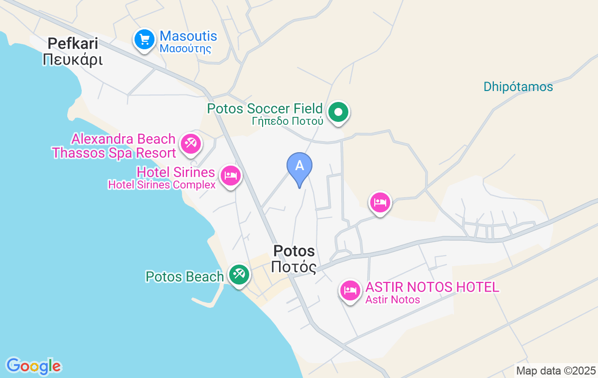 The villa is easily accessible - you need to turn left at the main intersection in Potos (coming from Limenaria), then immediately left again after the EKO gas station. Stella is located before Villa Aurora, on the left side.