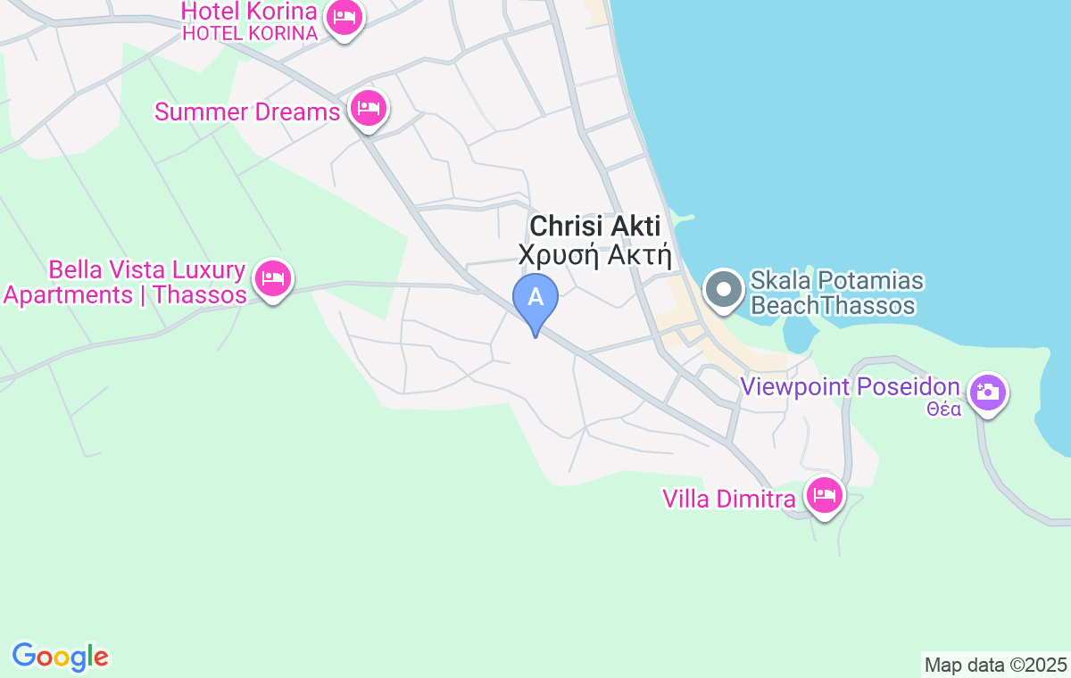 When you get off from the ferry in Limenas, follow the road to Panagia and Potamia. After about 7km you’ll reach Panagia, pass the center of the village and follow the road to Potamia. Drive through Potamia and continue straight ahead. You’ll pass by BP petrol station, then EKO petrol station and after about 100m you’ll get to the supermarket. Nina Studios are next to the supermarket.