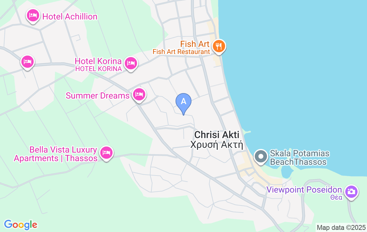 As we mentioned before, it is located in a place called Skala Potamia. It is about 500m away from the main pedestrian zone, as well as markets, taverns, and cafes.