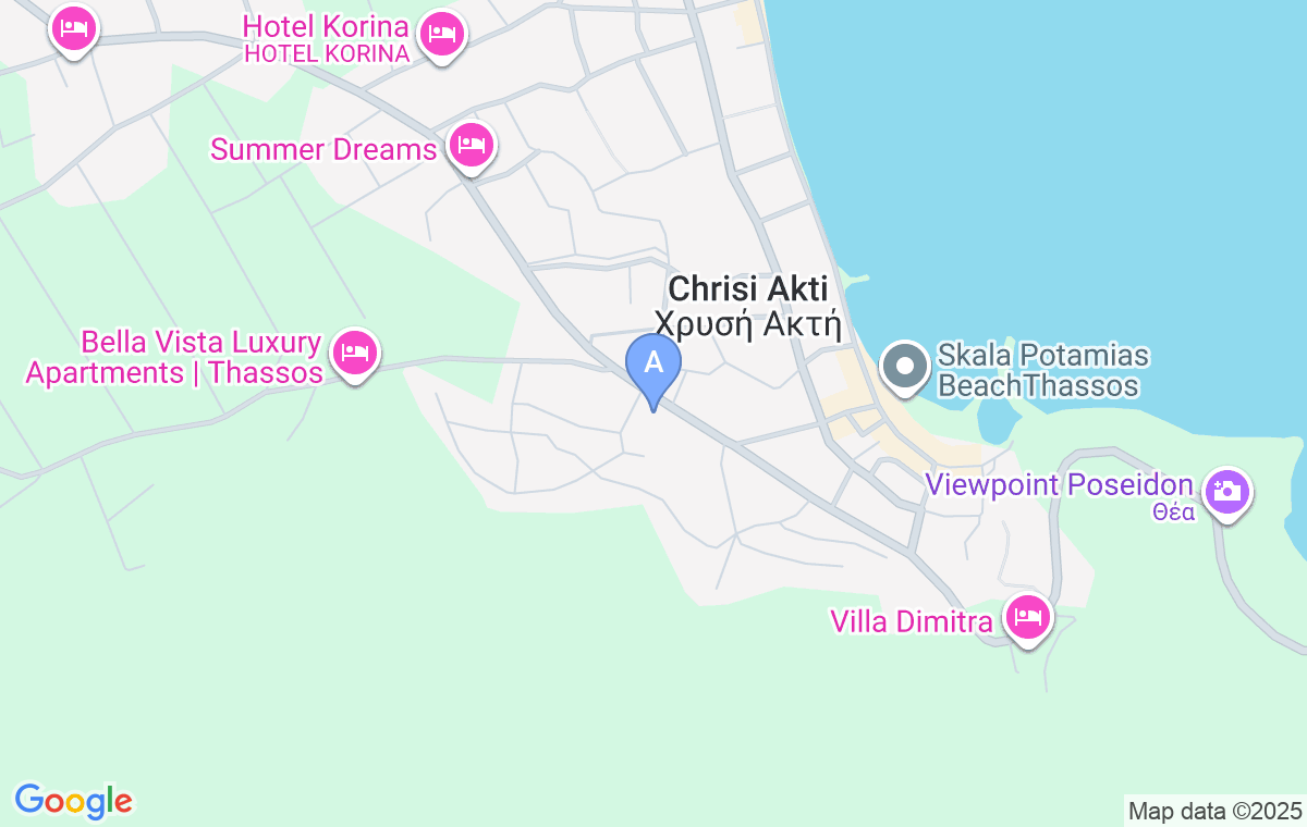 When you disembark from the ferry in Limenas, follow the road to Panagia and Potamia. After about 7km, you will reach Panagia, pass through the center and follow the road to Potamia. Go through Potamia and continue straight. After passing the BP gas station and then the JETOIL gas station, you will arrive at the supermarket after about 100m. Onelia Apartments are located before the supermarket.