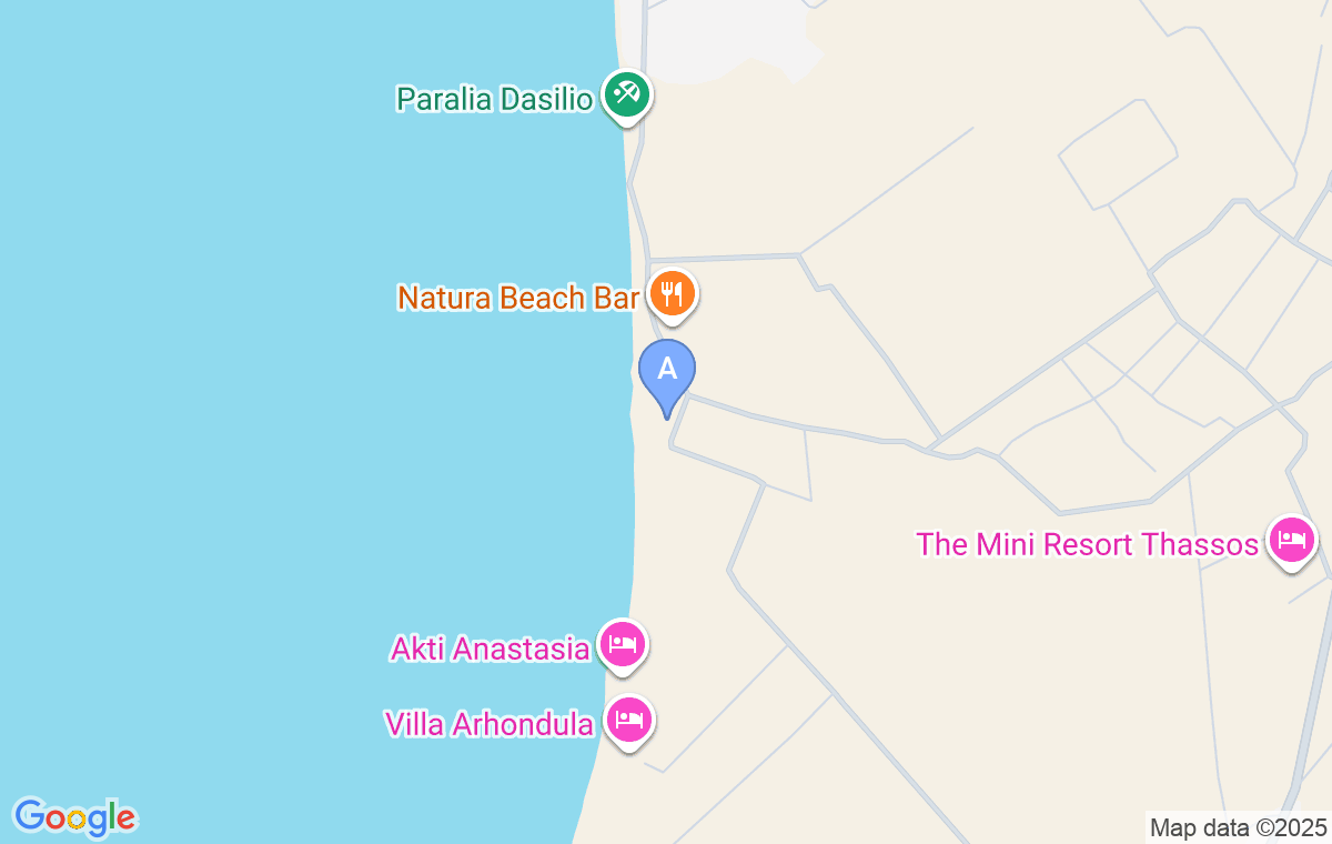 Villa Panaretos is located in Skala Prinos, on the small sandy beach. The center of the village with shops is about 2km away.