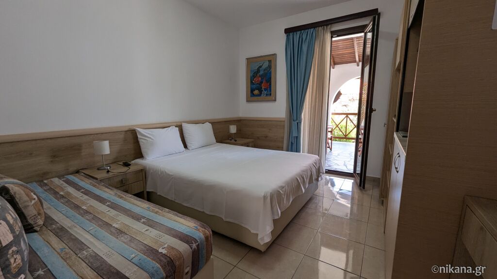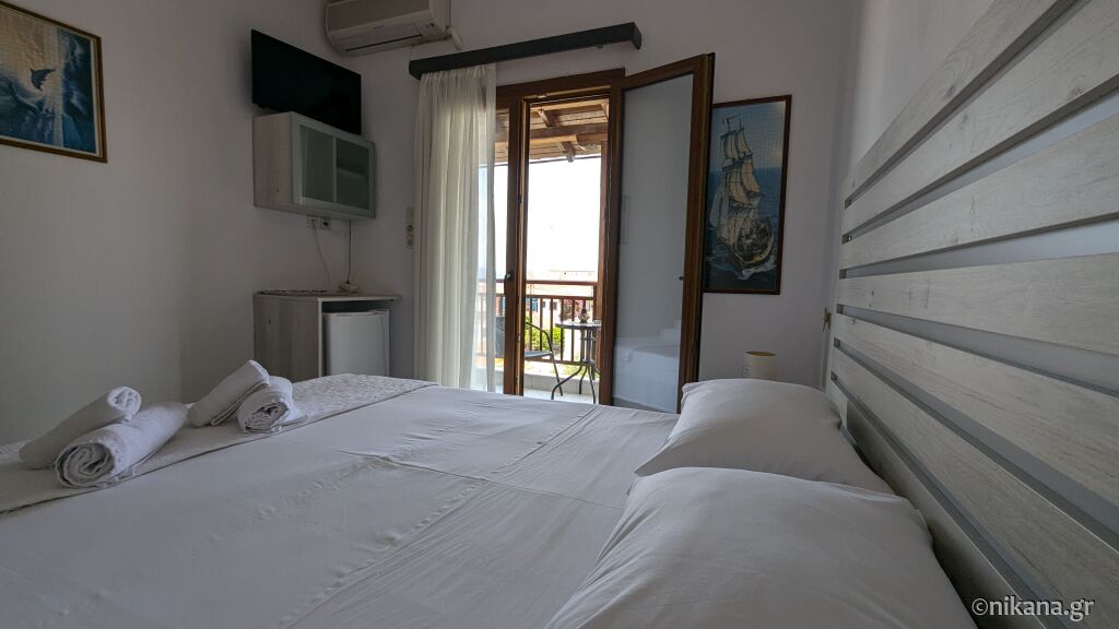 One double room on the first floor has a direct sea view. One triple room has a corner terrace and therefore a direct and side sea view. The rest of the accommodation units have side sea view from afar.