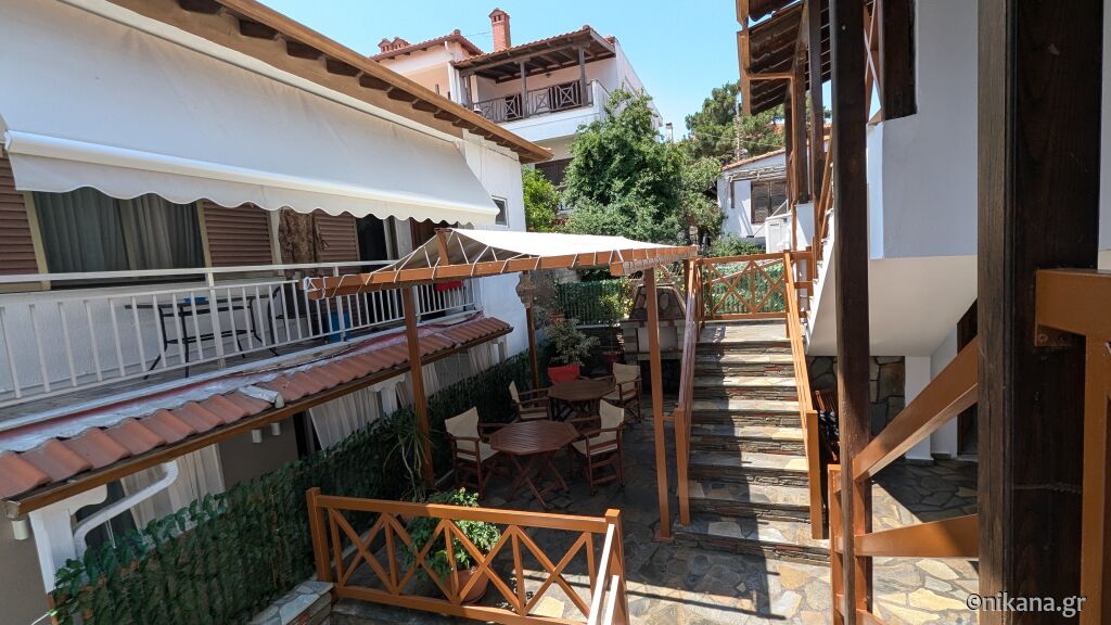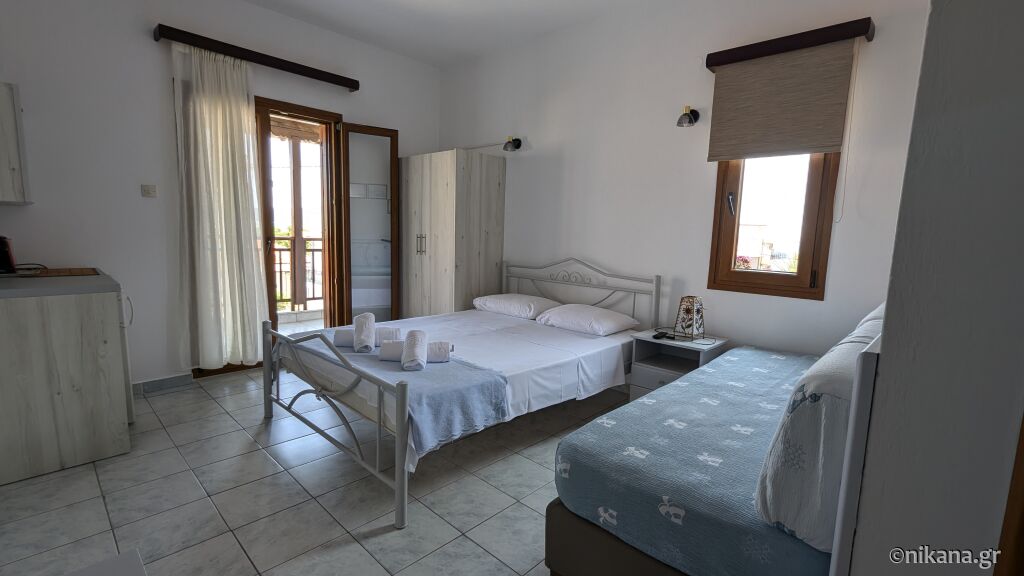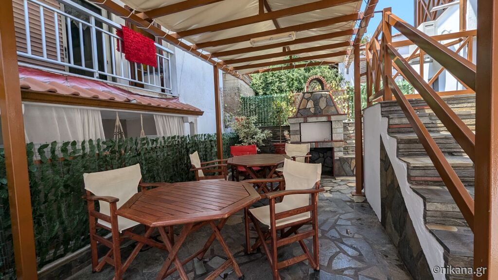 Zefyros Pension is the accommodation on Ammoulan island, in the second row from the beach, only 15m from the closest non-arranged beach and 60m from the nearest organized beach. It has three studios for 3-4 persons and seven rooms for 2-3 persons. Amenities include a space with outdoor seating furniture, ideal for socializing and a reception open until the evening.