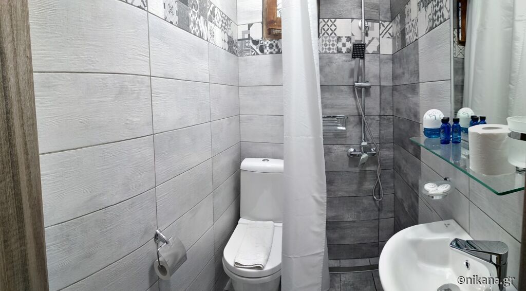 Sandy beach is 250m away. The nearest bakery and restaurant are at only 20m, while the center and market are about 200m away. The port is 400m away, and the Holy Mountain Pilgrim’s Office is 50m away.