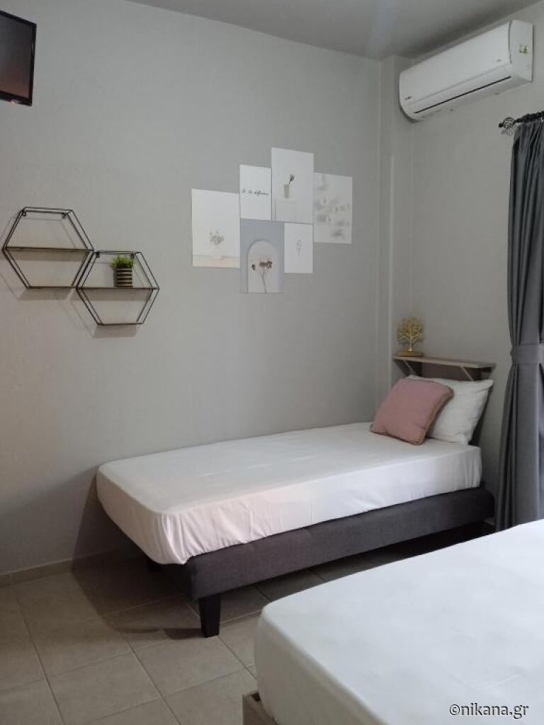 Almira Rooms is located in Nea Roda, a quiet and authentic seaside village on the eastern coast of Halkidiki, known for its relaxed atmosphere, long sandy beach, and simple summer rhythm that especially appeals to guests looking for a restful holiday without crowds. The accommodation is situated 160m from the beach, allowing guests to quickly descend to the sea at any time of the day, without the need for a car. The property is located in a peaceful part of the village, facing the courtyard, providing guests with additional tranquility and privacy during their stay in Nea Roda. The proximity to the sea, simple accommodation structure, neat surroundings, and convenient location within the village make Almira Rooms a good choice for couples, small groups of friends, and all other guests seeking practical and functional accommodation for their summer vacation.
