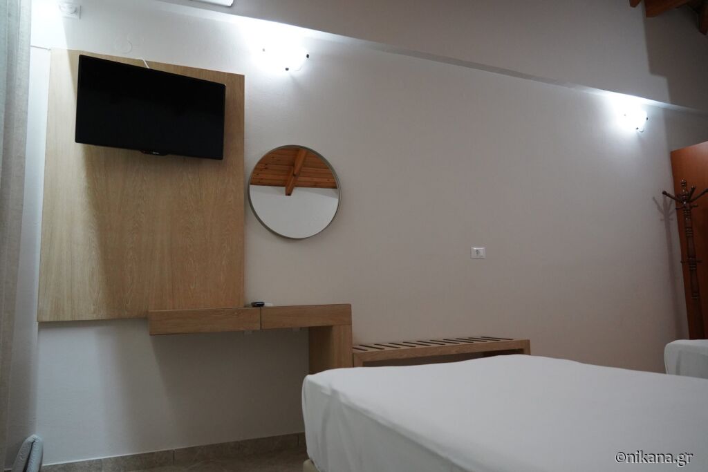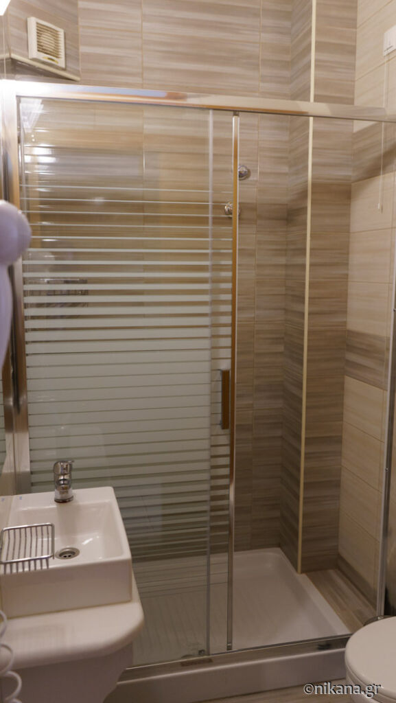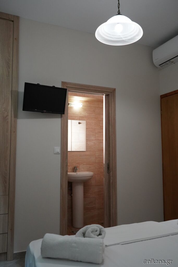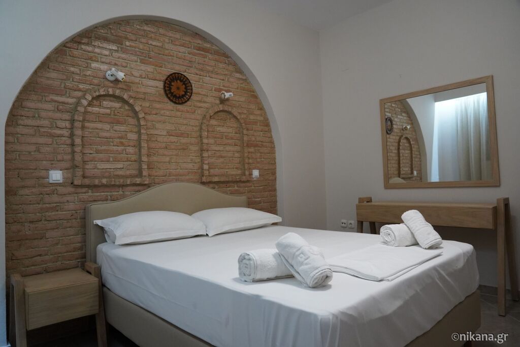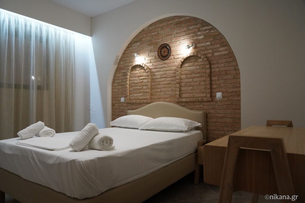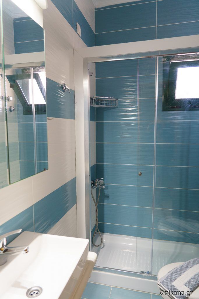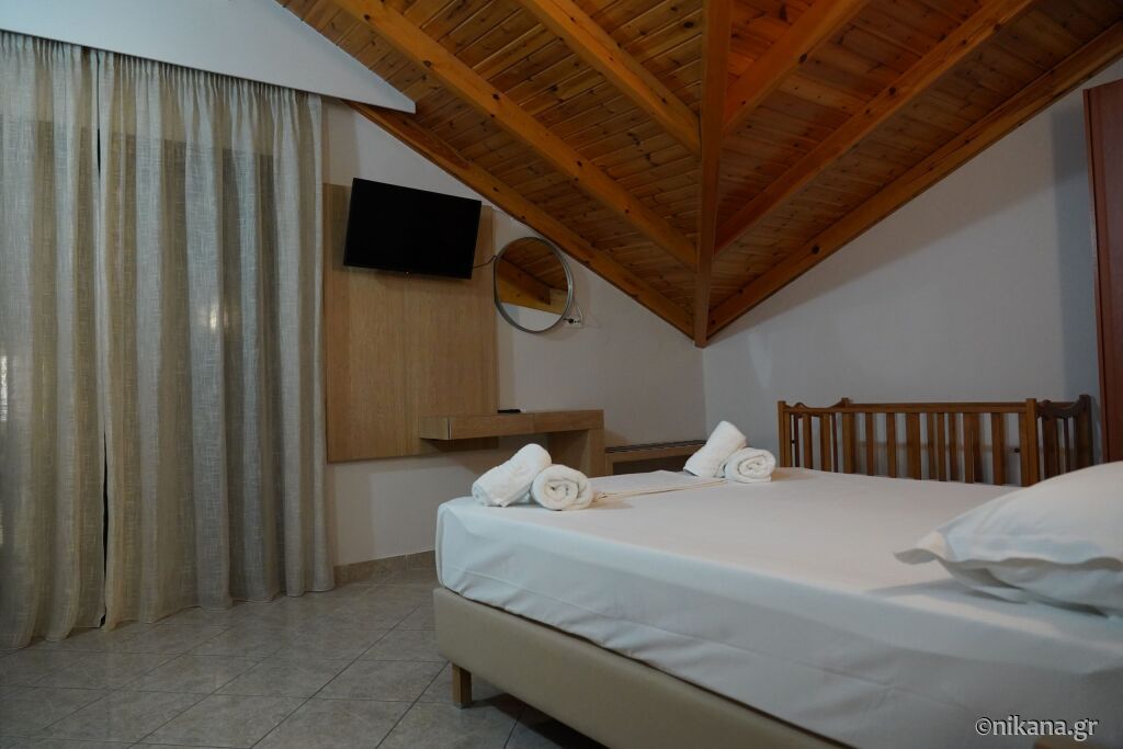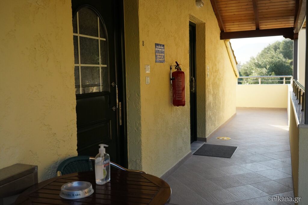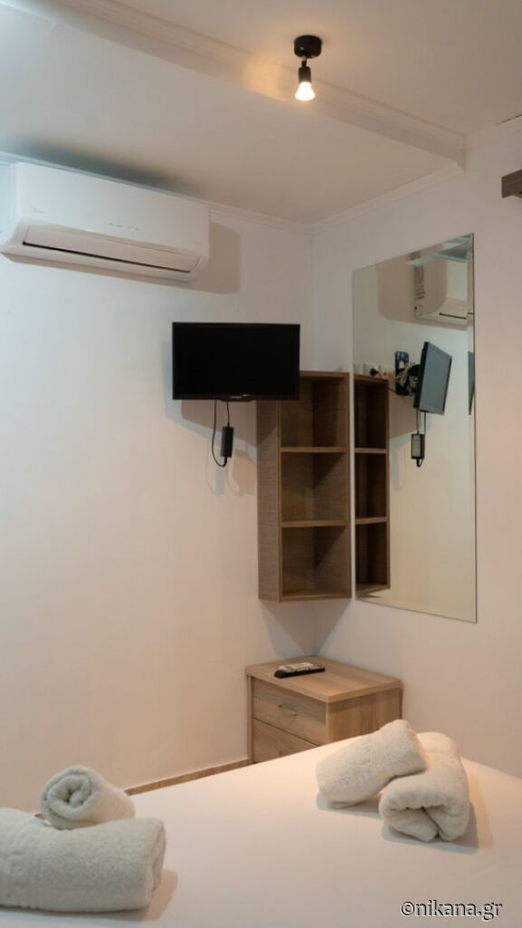 There are also five apartments (45-50m2) with one double bed in one bedroom and two single beds in the other room. Two apartments (no. 4 and 5) have a side sea view (no. 5 has one bedroom, not two), the others have a direct view.