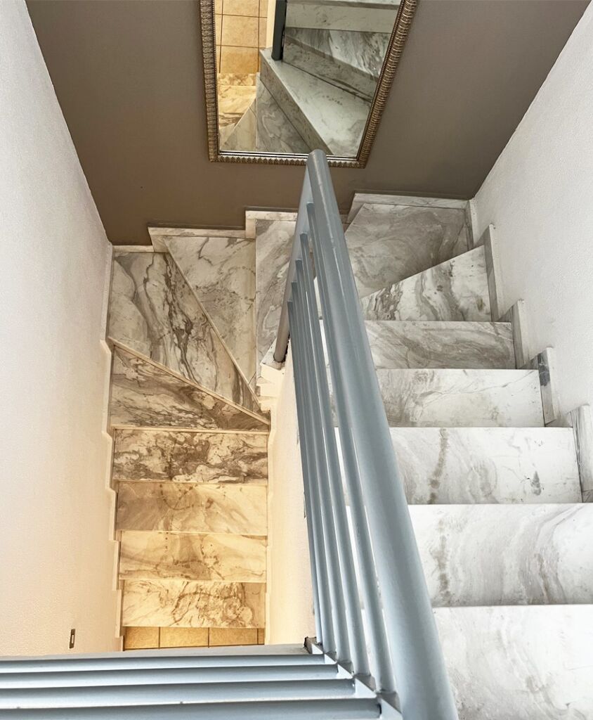 Two two-bedroom apartments, designed as maisonettes, are spread over two levels and can accommodate up to five adults. They consist of a living room with a kitchen, two bedrooms, and two bathrooms. Each bedroom has a double bed, while the living room has a sofa for one person.