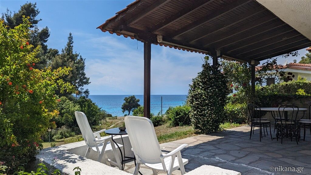The spacious veranda, which is accessed from the living room, is equipped with seating set and overlooks the surrounding greenery, has direct access to the green grassy area and a side view of the sea. The bedroom leads to the veranda, which is slightly smaller and is equipped with seating set.