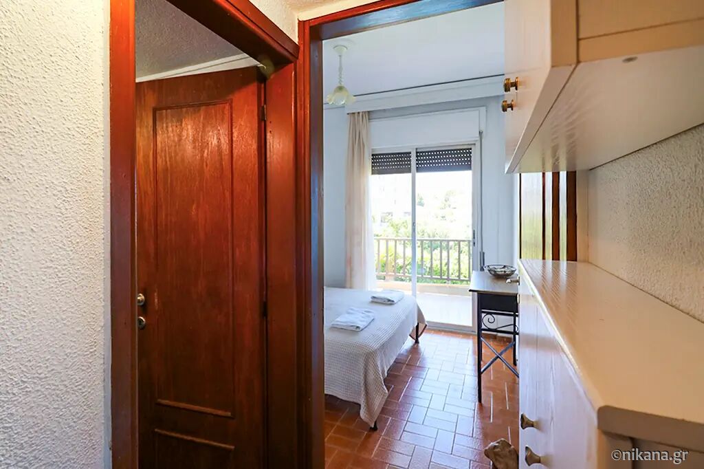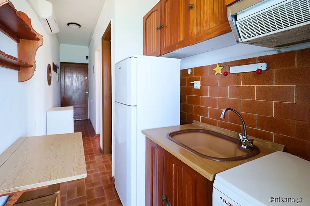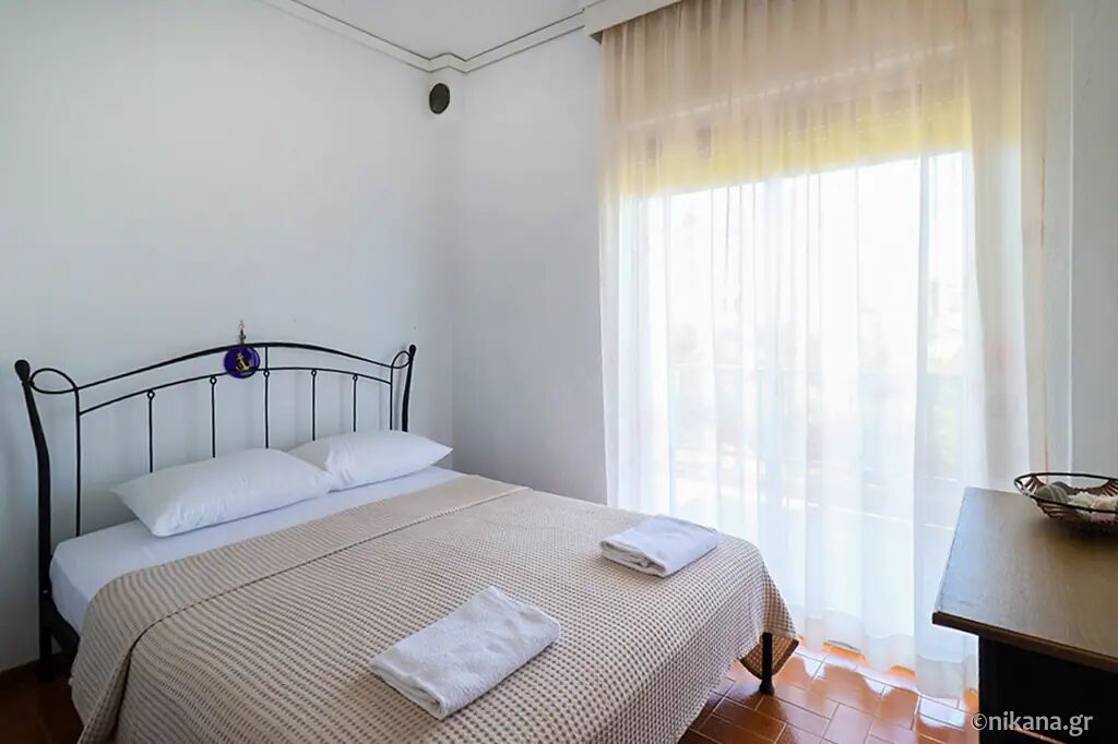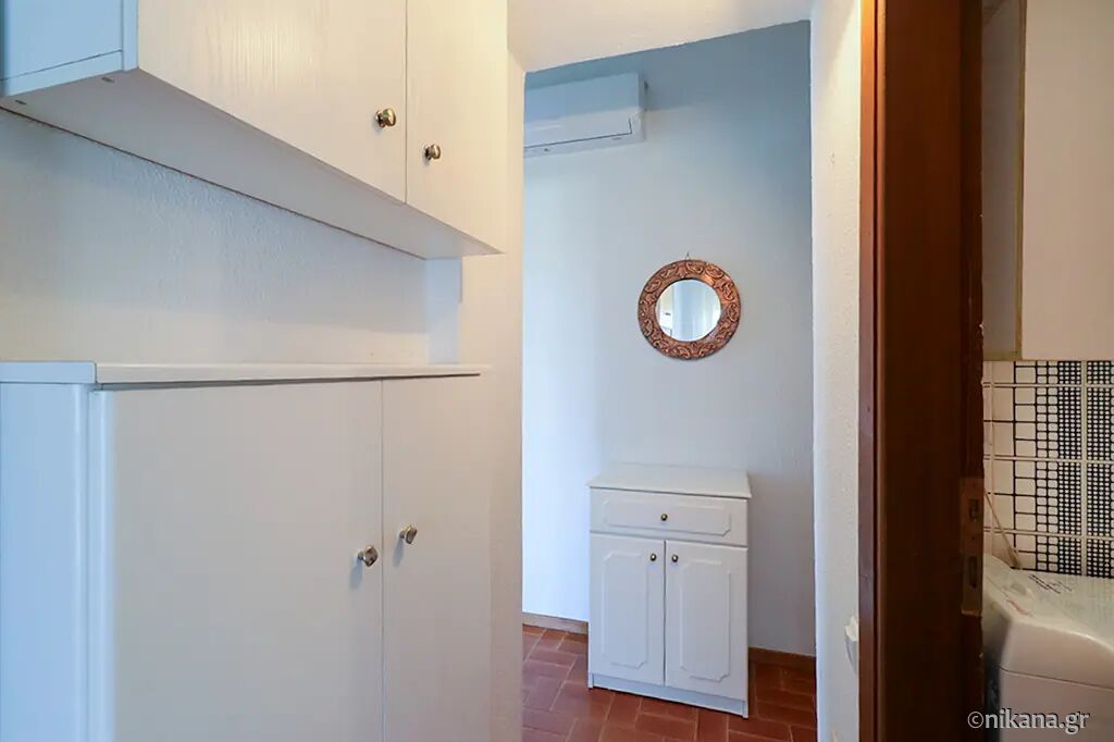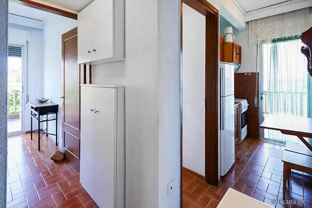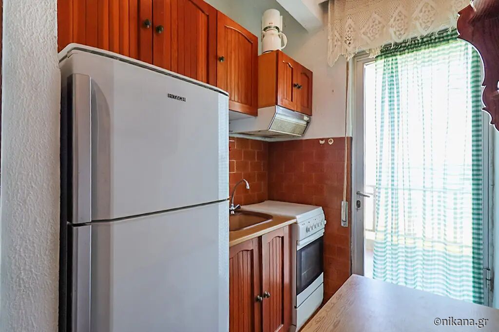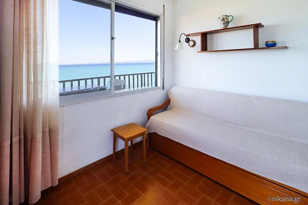 Paschalis Seafront Apartment is located in Hanioti, on the eastern coast of the Kassandra peninsula, right on the beachfront. The accommodation is only 30 meters from the sea, allowing guests to enjoy the immediate proximity of the shore and spend every moment of their holiday with the scent and sound of the waves. The apartment’s position combines practicality with a unique holiday experience, as everything takes place just steps away from the beach and the lively atmosphere of Hanioti.