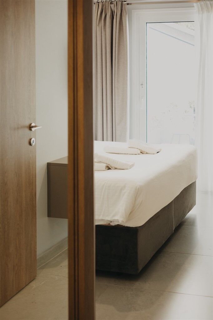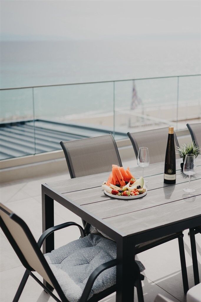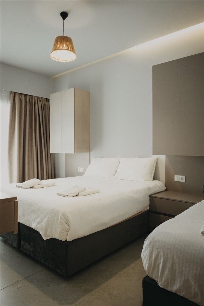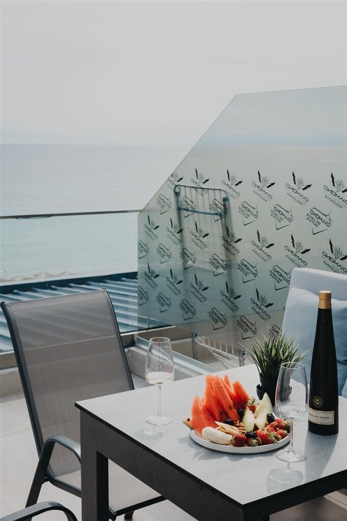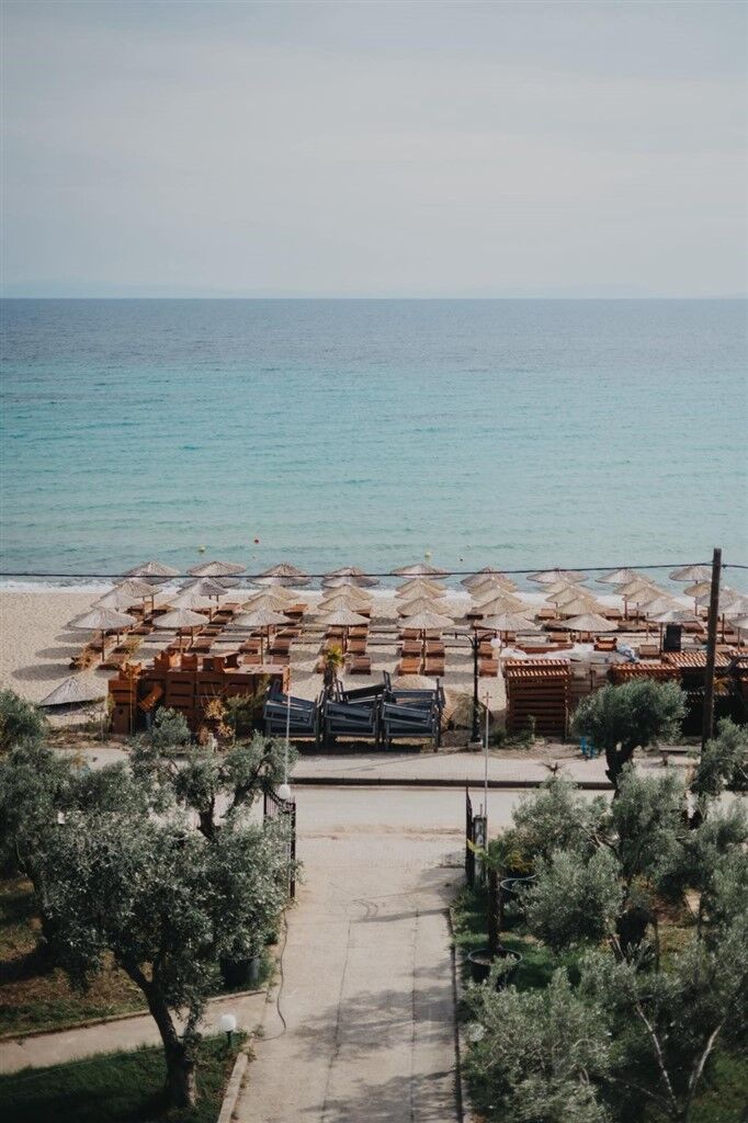 Diamond Seaside Suites is located almost directly on the beach, with a courtyard that opens directly onto the street separating the property from the sea. The accommodation is modern and stylishly furnished, featuring an elegant interior that provides a high level of comfort and a pleasant atmosphere for relaxation. Every detail is carefully designed to make guests’ stays as enjoyable as possible, from quality furniture to functional room layouts. Thanks to its location practically on the beach, guests can enjoy close proximity to the sea throughout the day while still being slightly removed from the busiest areas. Nea Moudania is one of the largest and most developed towns in Halkidiki, situated in a highly attractive location near Thessaloniki. At the same time, it serves as an excellent base for exploring both Kassandra and Sithonia. The beach in Nea Moudania is long and mostly sandy, with crystal-clear water and a gently sloping shallow area – ideal for children and anyone who prefers easy access to the sea. The shoreline and nearby areas are predominantly sandy, while further from the town center, rocky areas with natural shade can also be found. There is a shaded playground by the beach, and several smaller playgrounds are available throughout the town, both outdoors and within cafes, adding to a quality and activity-filled vacation.
