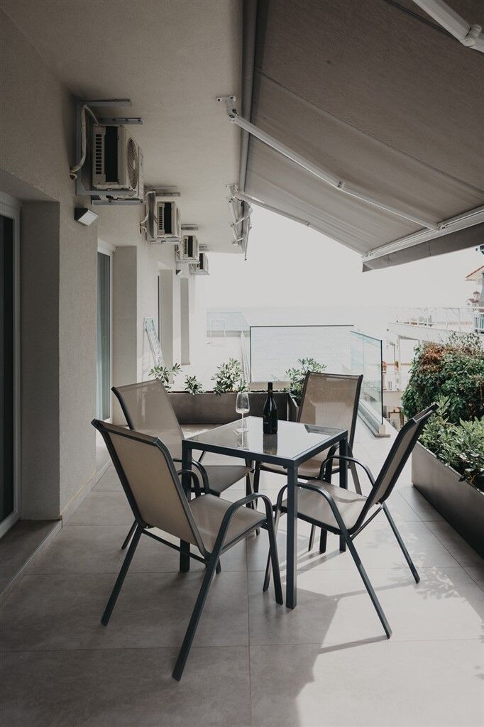 Each unit has a private balcony with seating, ideal for relaxing while enjoying the beautiful sea view. Guests also have access to a shared barbecue in the courtyard. The property collaborates with two beach bars in front of the accommodation, allowing guests to use sun loungers with a minimum daily food or drink consumption.
