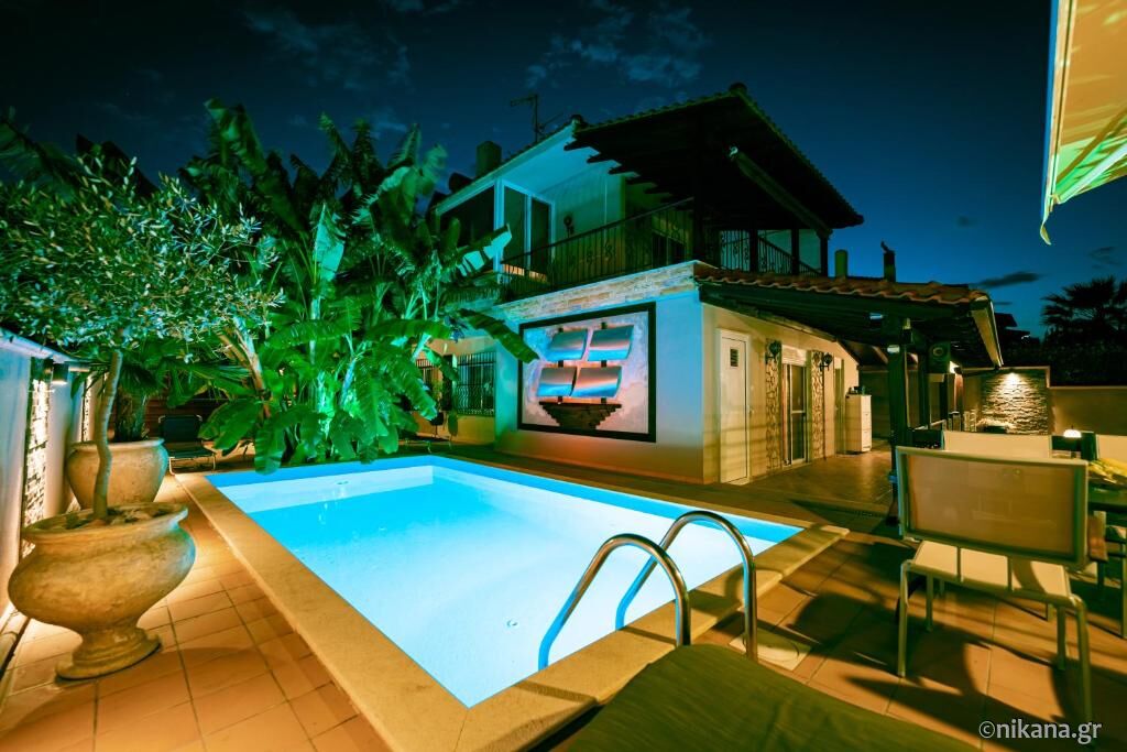 Natura Villa is located at the entrance to Nea Flogita, if you are coming from the direction of Nea Mudanya, within a complex of villas that are in a peaceful location. The villa has a pool and a large yard and can accommodate up to twelve people. The yard of this villa is a heavenly corner, which will provide every guest with a perfect vacation.