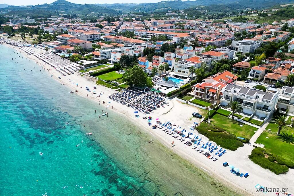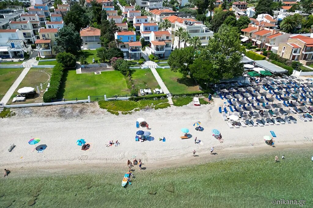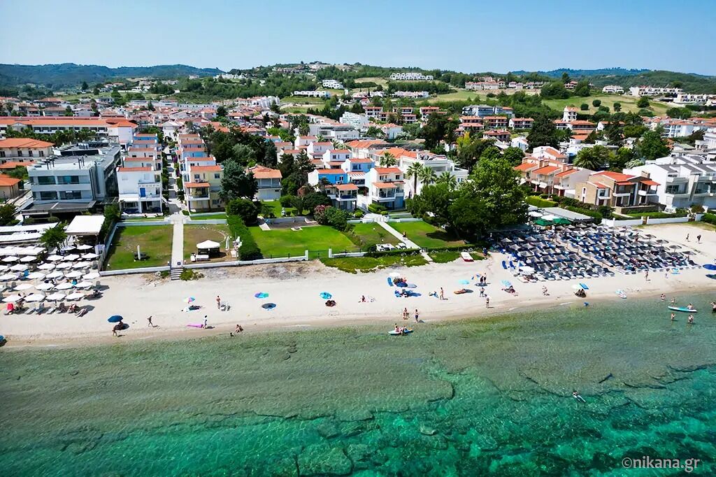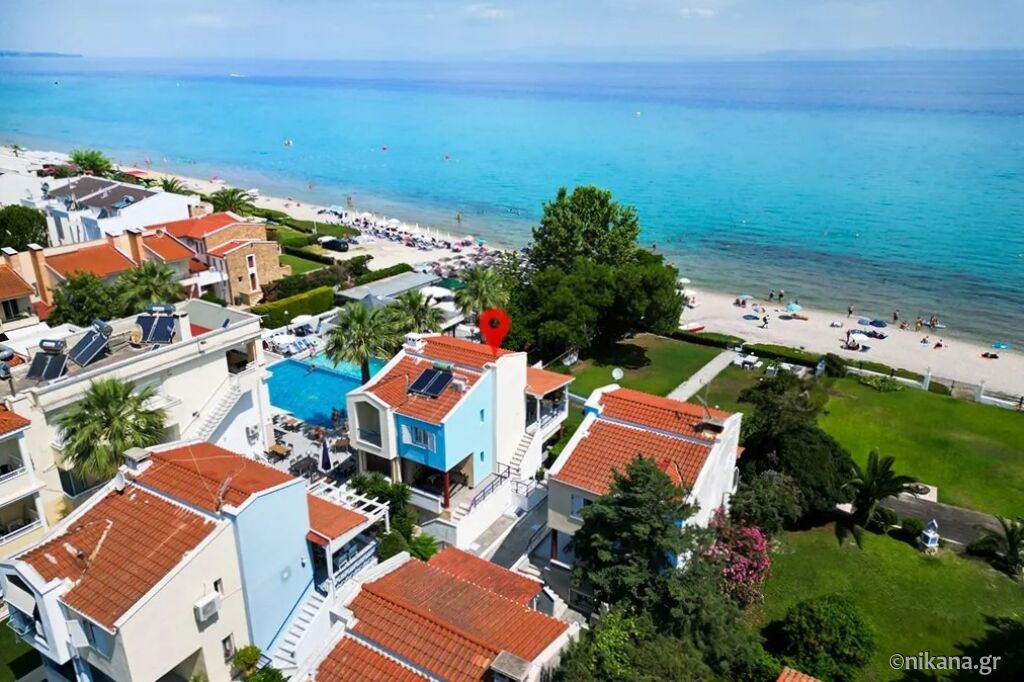 Harmony Sea House is located in an excellent location, right next to the beach, with direct access to the sea, just 25 meters away, equivalent to the length of the yard. It is situated in the popular and beautifully maintained village of Hanioti, on the eastern coast of the Kassandra peninsula. Thanks to its unique location, guests can enjoy peace and privacy, with the beach and sea just steps away. Only a few steps separate the accommodation from the sandy shore and clear waters, making it an ideal choice for families with children as well as for those who want to wake up to the sound of the waves. Numerous cafés, restaurants, and shops are nearby, and the village center is easily accessible via a pleasant walk along the waterfront.