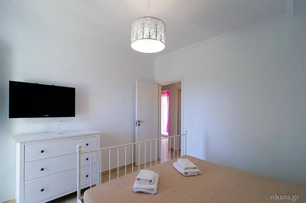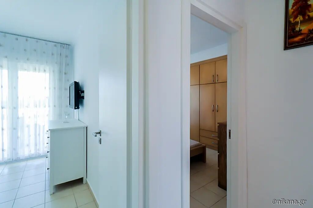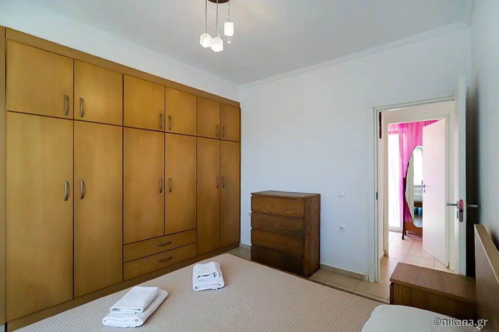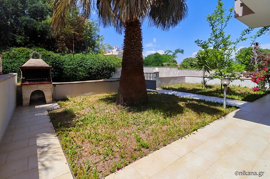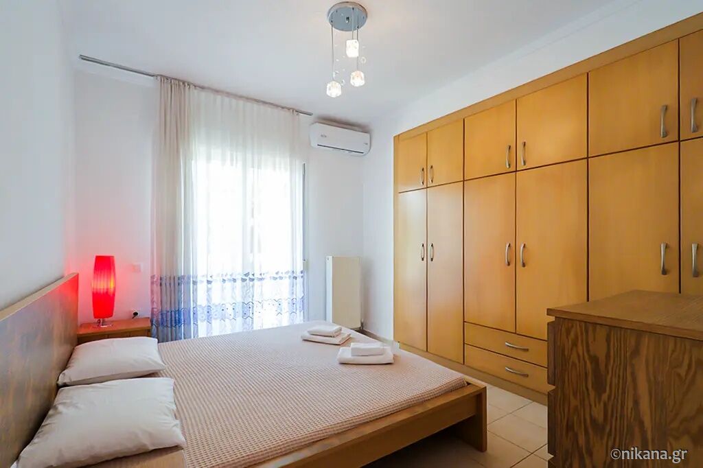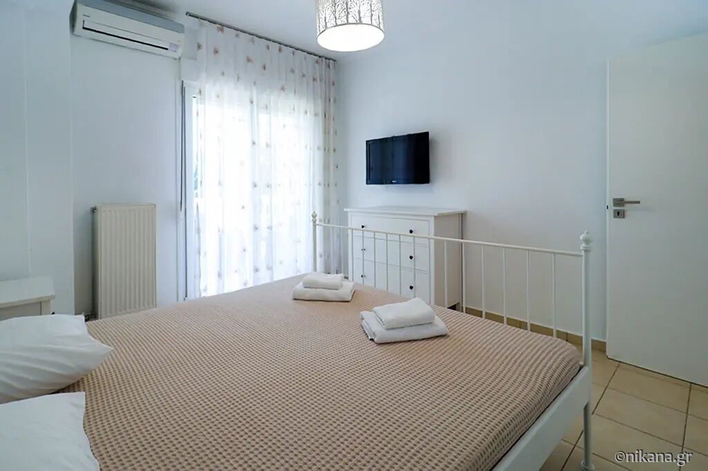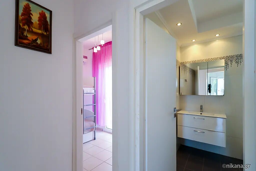 Petra House is situated in the popular resort of Pefkohori, on the eastern coast of the Kassandra peninsula, and represents an excellent choice for guests seeking comfortable, spacious, and functionally organized accommodation for larger groups or families. This two-level house is located 500 m away from the beach, nestled in a quieter part of town, surrounded by pleasant family homes and landscaped yards, yet still close enough to the center and the sea to allow for leisurely daily walks to the beach, restaurants, and evening entertainment. The advantage of this accommodation lies in its ample capacity, the privacy it offers, the well-maintained and fenced yard, and the fact that it is a suitable choice for an extended stay by the sea.