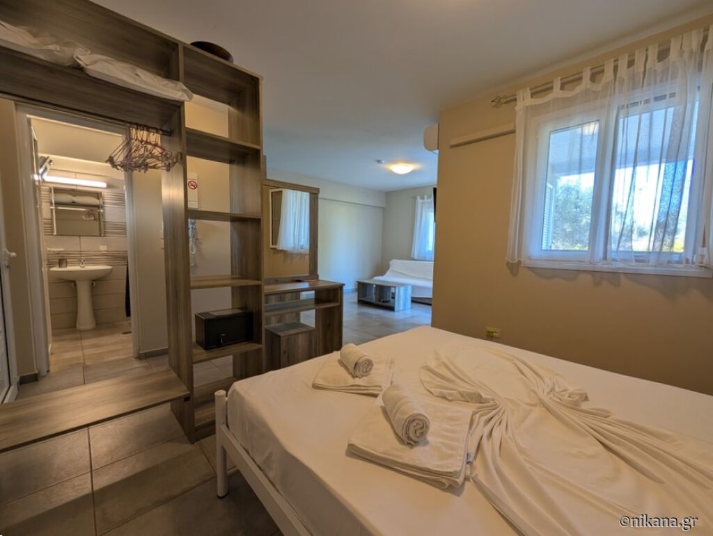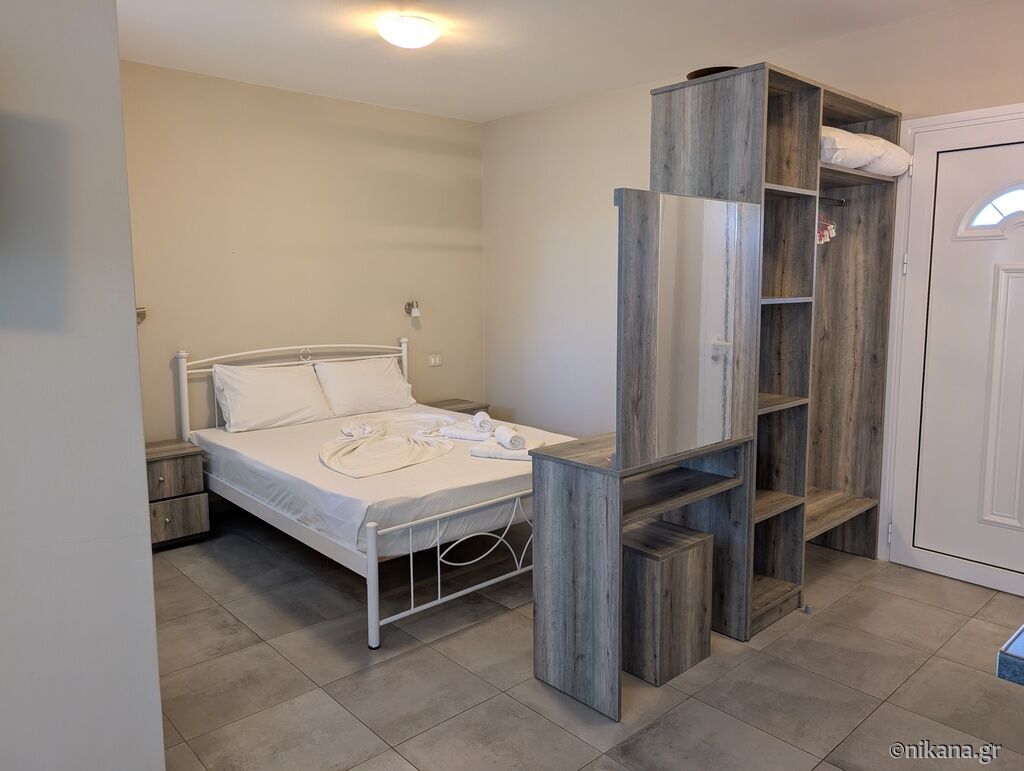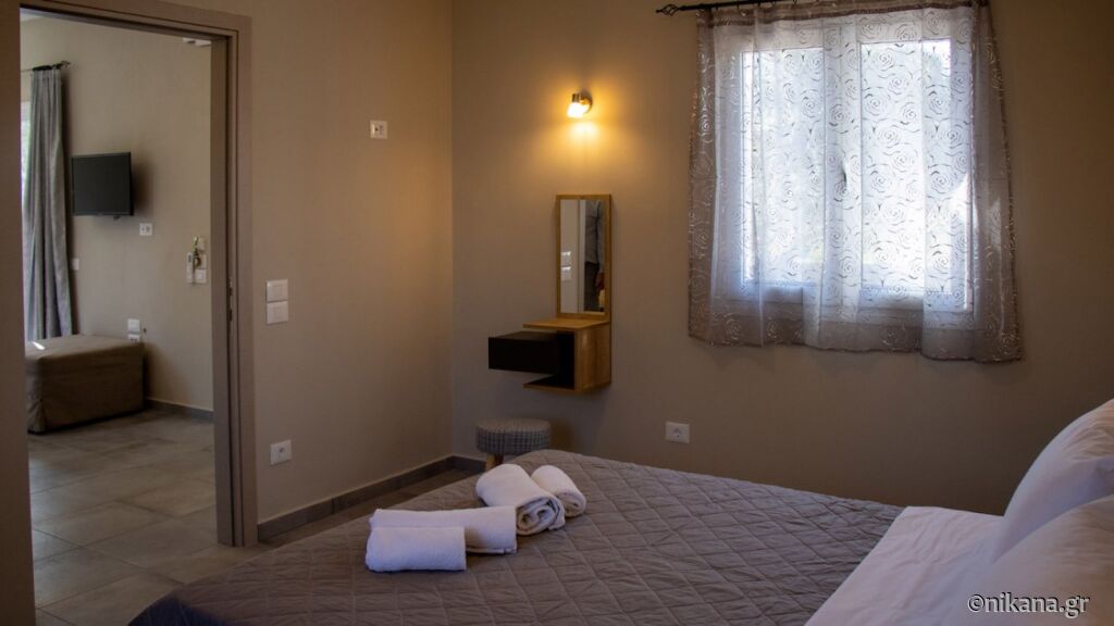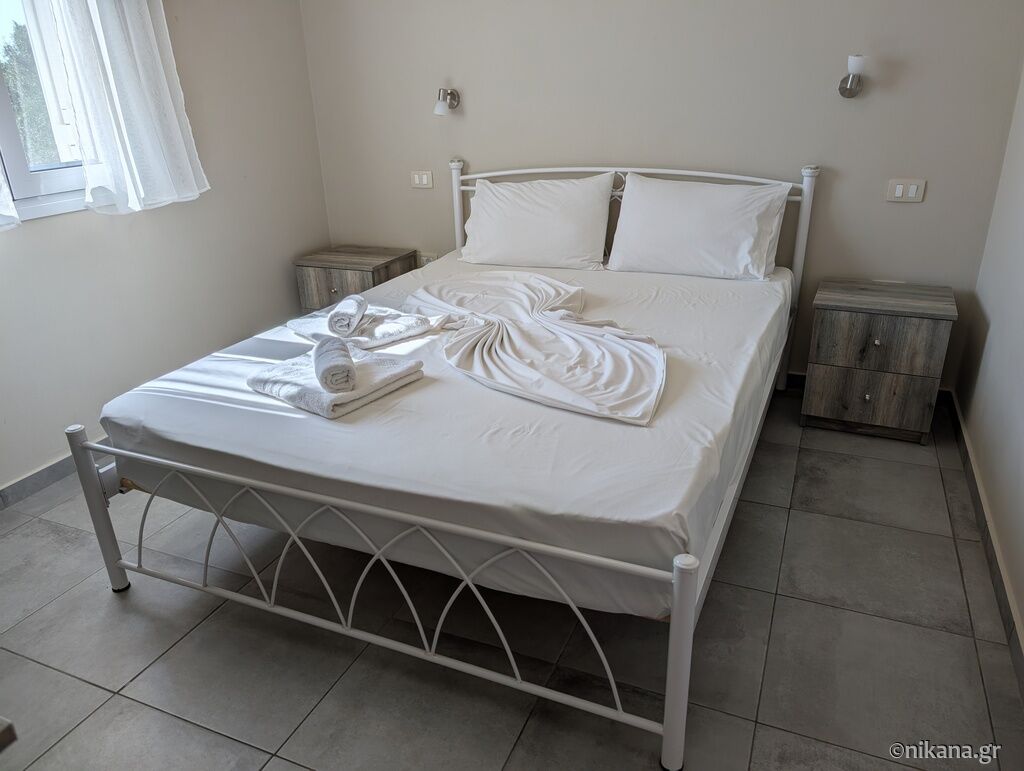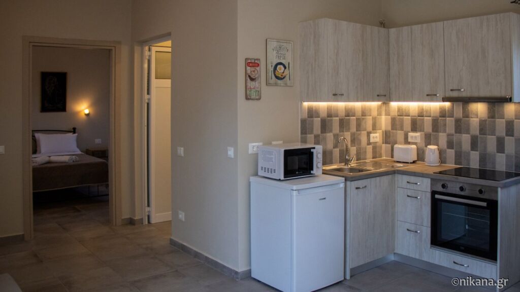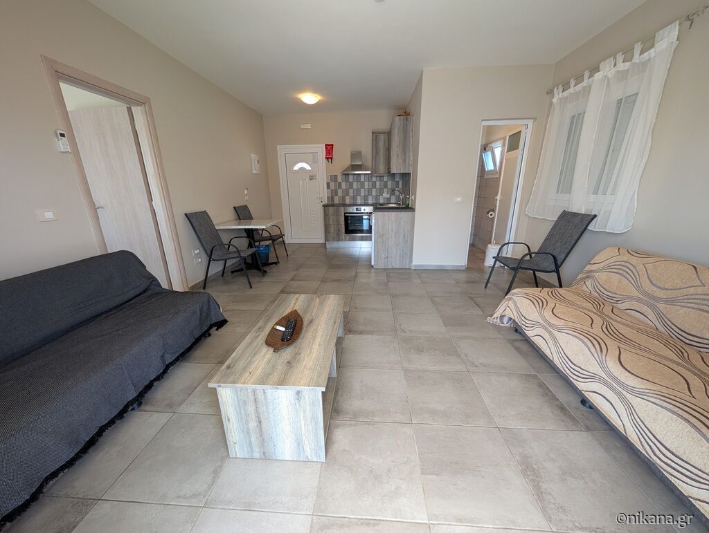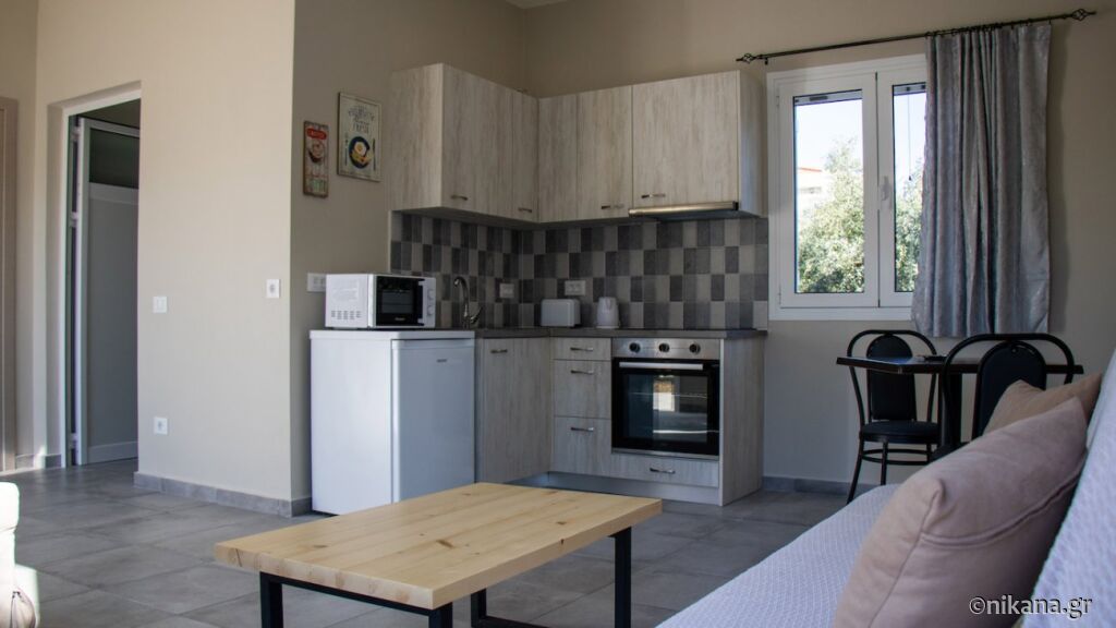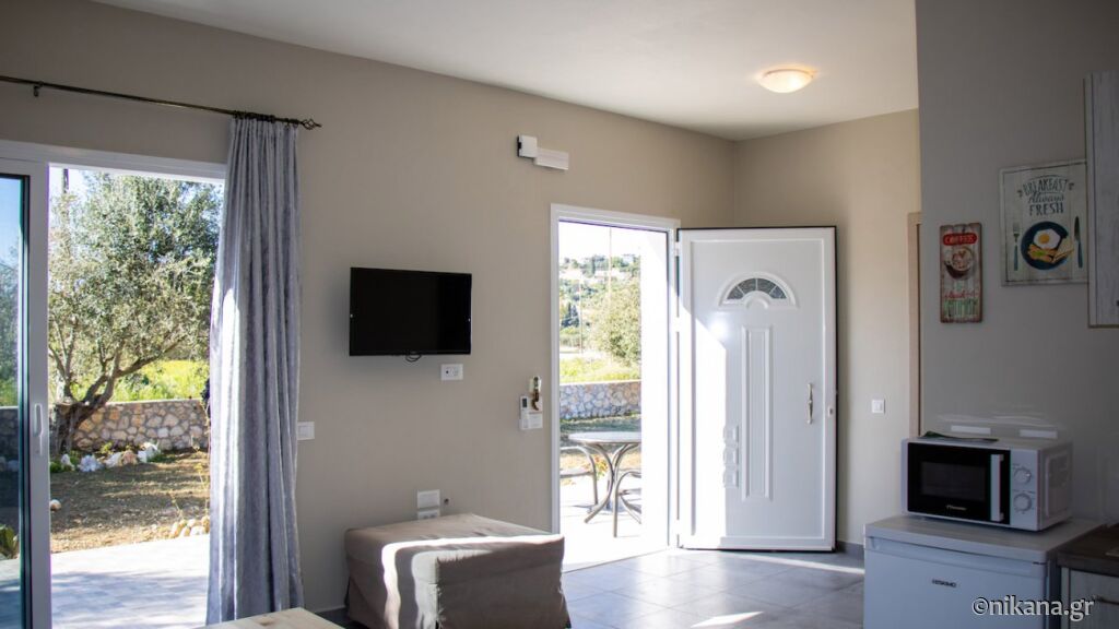 House is 500 meters away from Ai Helis beach, supermarket is 200 meters and first restaurant 150 meters far. Supermarket has meat shop and bakery.