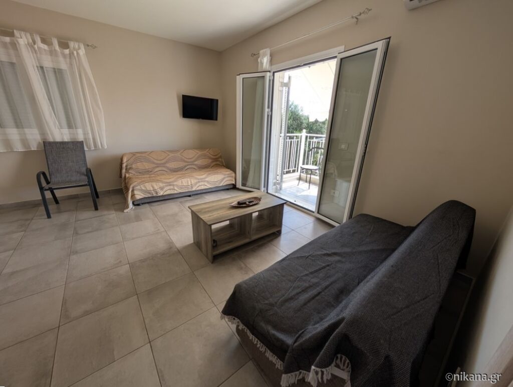 One more apartment, built for season 2023. is located in the same yard but outisde the building. It can accommodate 4 persons maximum and it has one double bed in bedroom and sofa bed in living room. When needed, an extra bed can be added.