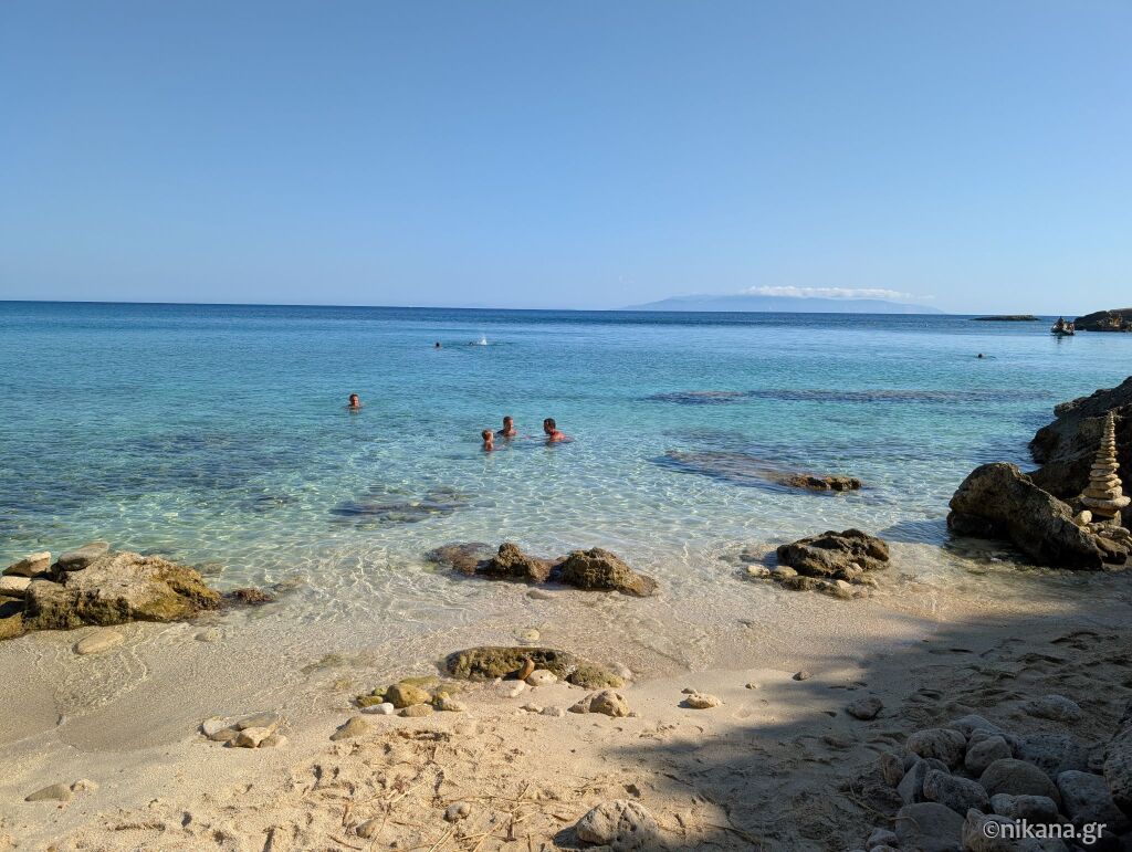 - Pebble Cove (left): Crystal clear water and entirely pebbly seabed. Ideal for a peaceful swim.