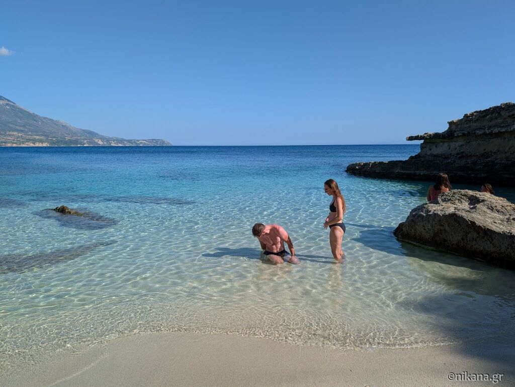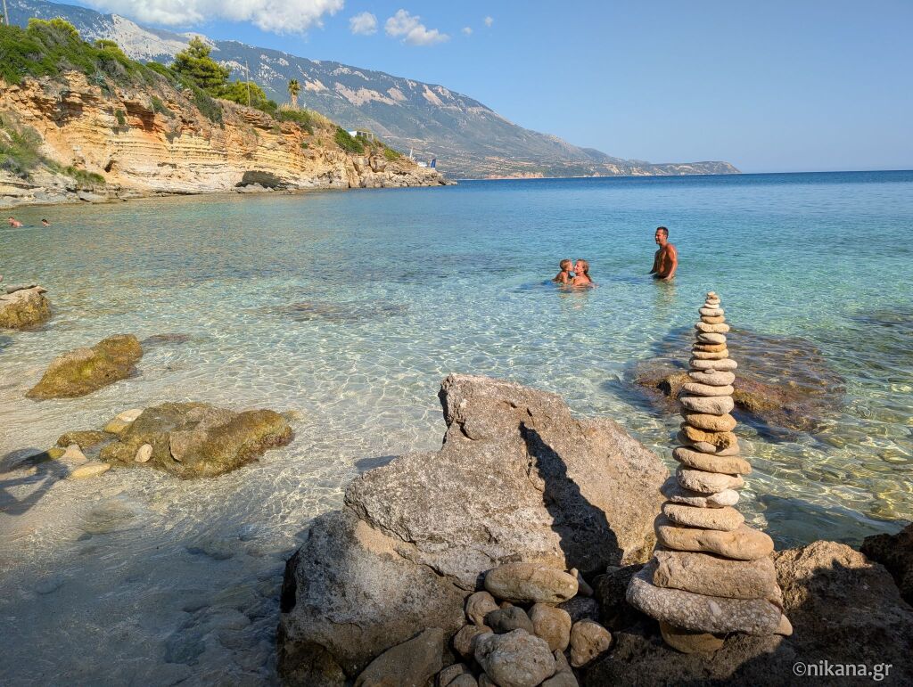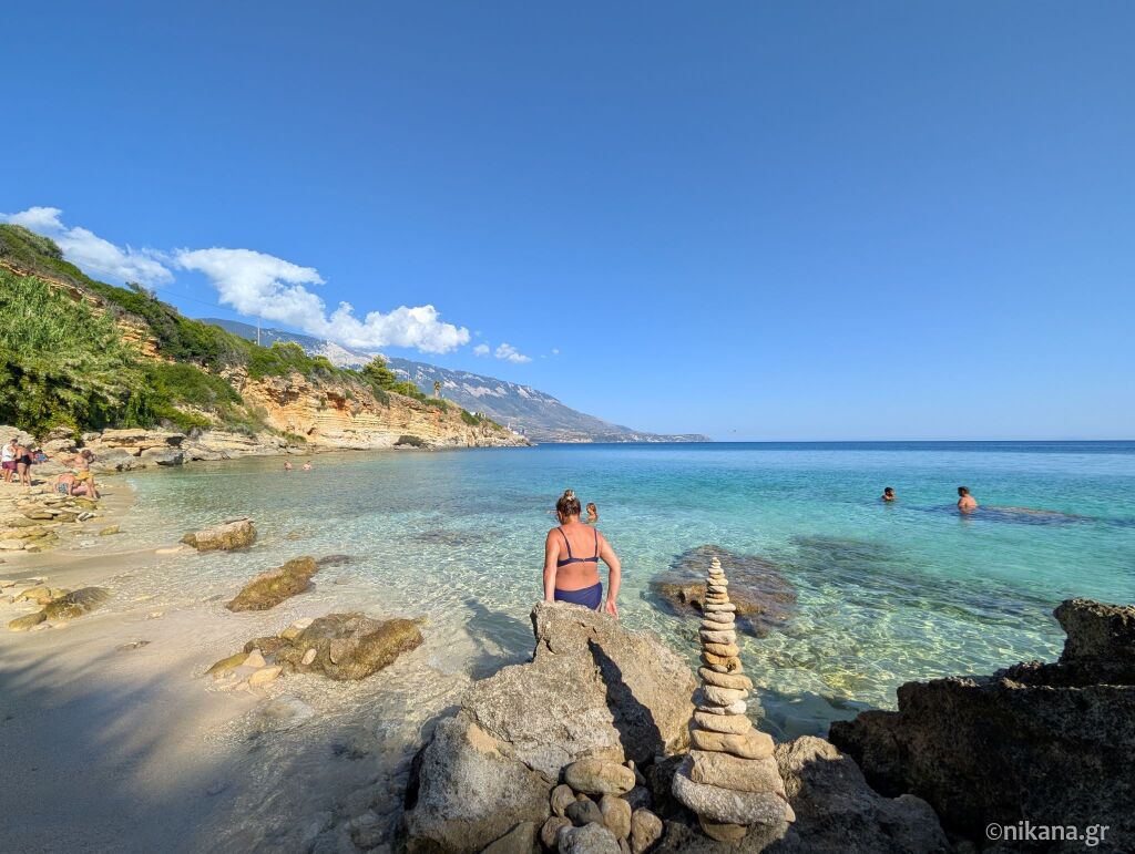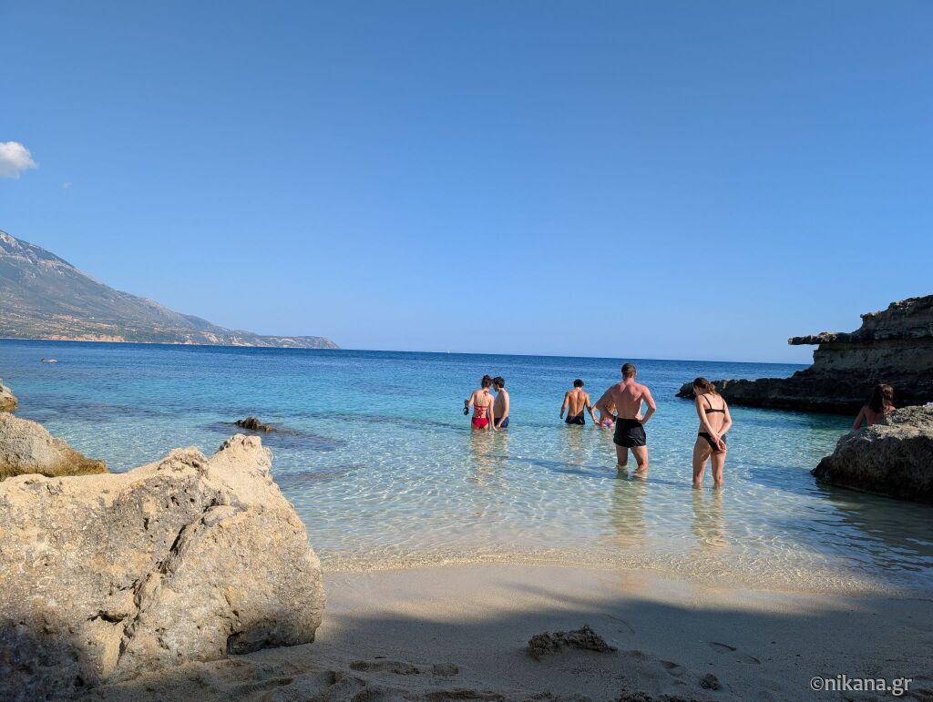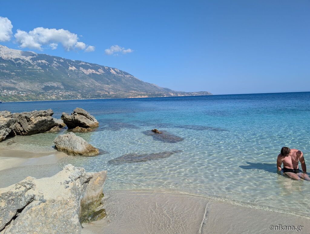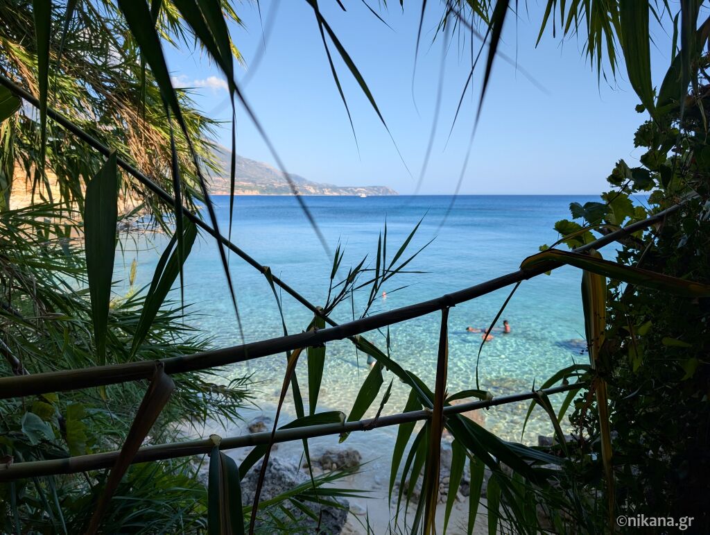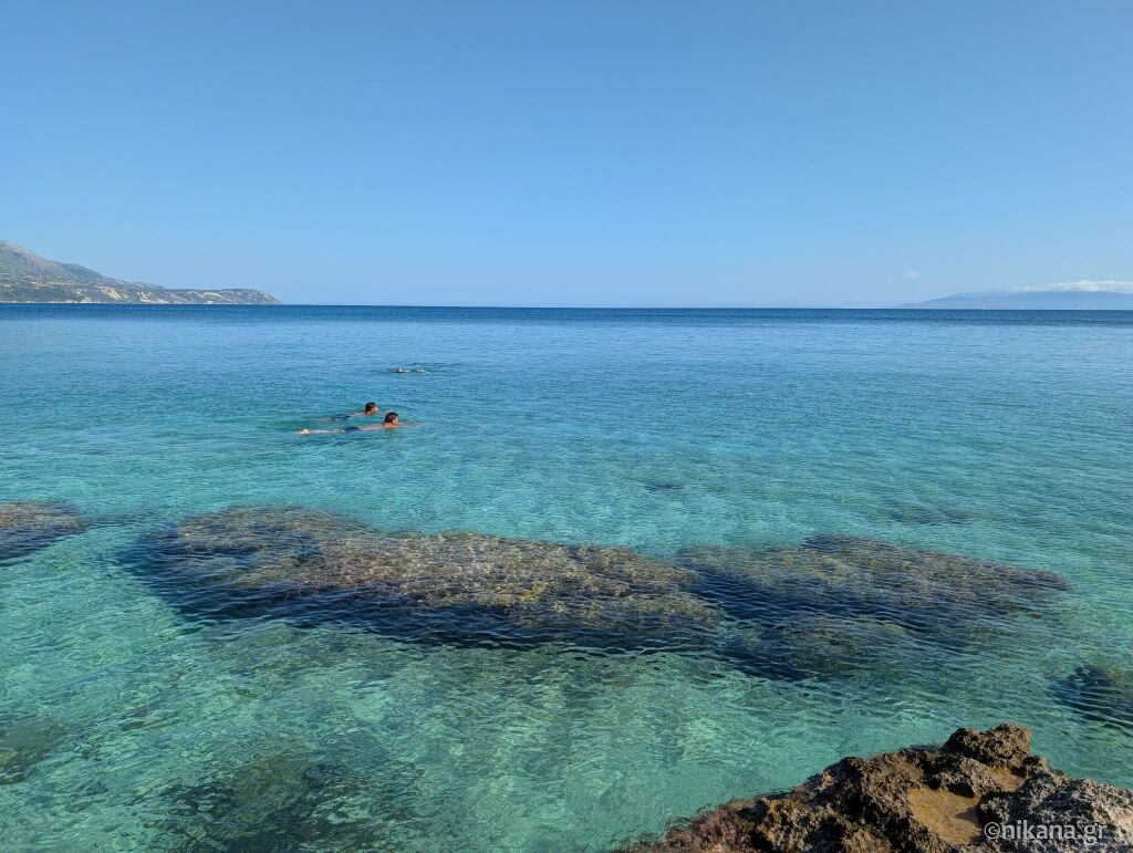 The beach is located in Pesada, on the southeastern coast of Kefalonia, approximately 12 km southeast of the main town of Argostoli, near the village of Spartia. This small village is part of the Leivatho municipality and generally remains uncrowded, making it an ideal place for a tranquil vacation and enjoyment of the untouched nature of Kefalonia.